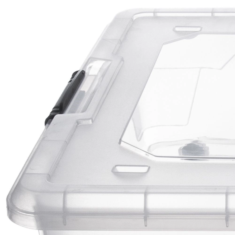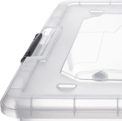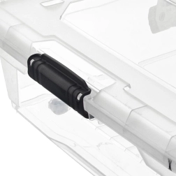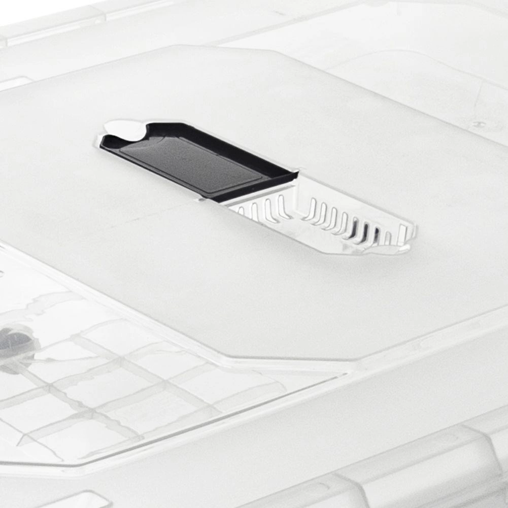 Stabile Seitenclips und ein passgenauer Deckel schützen vor Staub. Die transparenten Wände erleichtern die schnelle Identifizierung der verstauten Gegenstände.