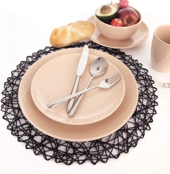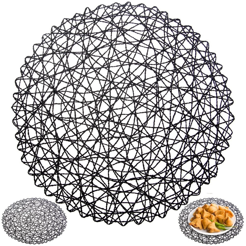 Elegante Tischdekoration in Form einer runden Papierunterlage in Schwarz verleiht dem gedeckten Tisch einen modernen, eleganten Look. Die an Spitze erinnernde Struktur wirkt sehr dekorativ und kommt unter Tellern sowie unter Glas- oder Keramik-Accessoires bestens zur Geltung.