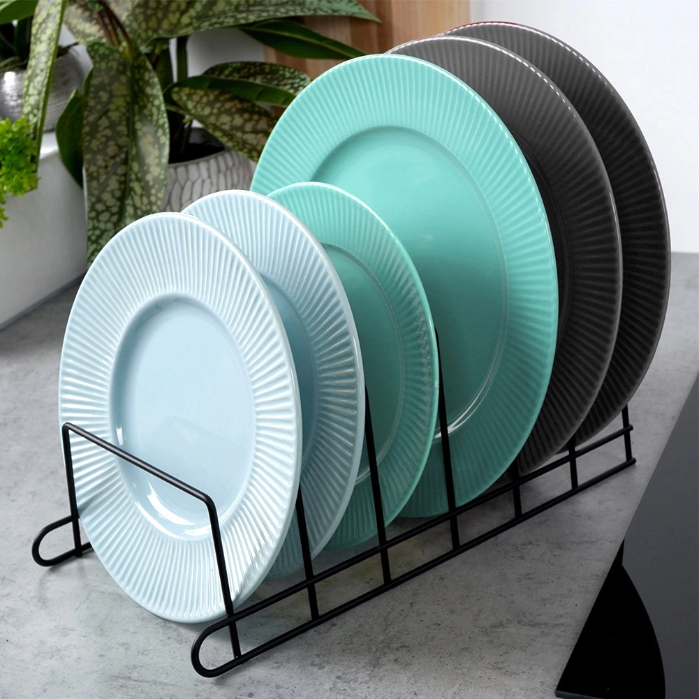 Behalten Sie in der Küche den Überblick mit dem robusten Metallständer, ideal für Deckel, flache Teller und je nach Form auch tiefere Teller. Geeignet für die Arbeitsplatte, den Schrank oder die tiefe Schublade. Das minimalistische Design in Schwarz harmoniert mit modernen wie klassischen Küchen.