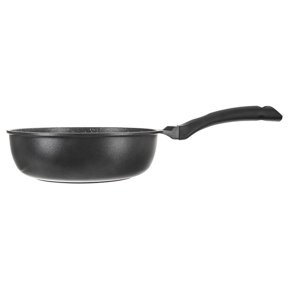 Entdecken Sie eine zuverlässige Küchenpfanne, die elegantes Design mit praktischen Funktionen für den täglichen Einsatz kombiniert. Die tiefe Ausführung ermöglicht bequemes Anbraten von Fleisch und Gemüse, die Zubereitung von Soßen sowie einfachen „One-Pot“-Gerichten. Die Pfluon-Granit-Beschichtung ohne PFOA sorgt für Antihaft-Eigenschaften und leichte Reinigung – so können Sie mit minimalem Öl kochen.