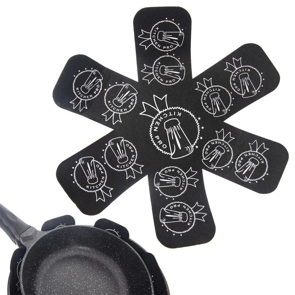 Enthalten ist eine Filzunterlage, die die Antihaftoberfläche beim Stapeln der Pfannen schützt – ohne Kratzer und unnötigen Verschleiß.