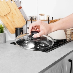 Der Deckel ist spülmaschinengeeignet und bis 200 °C hitzebeständig. Der ergonomische, hitzebeständige Griff sorgt für sicheren Halt bei der Handhabung. Eine ausgezeichnete Wahl, wenn Sie einen Deckel für Pfanne oder Topf ohne Originalabdeckung benötigen.
