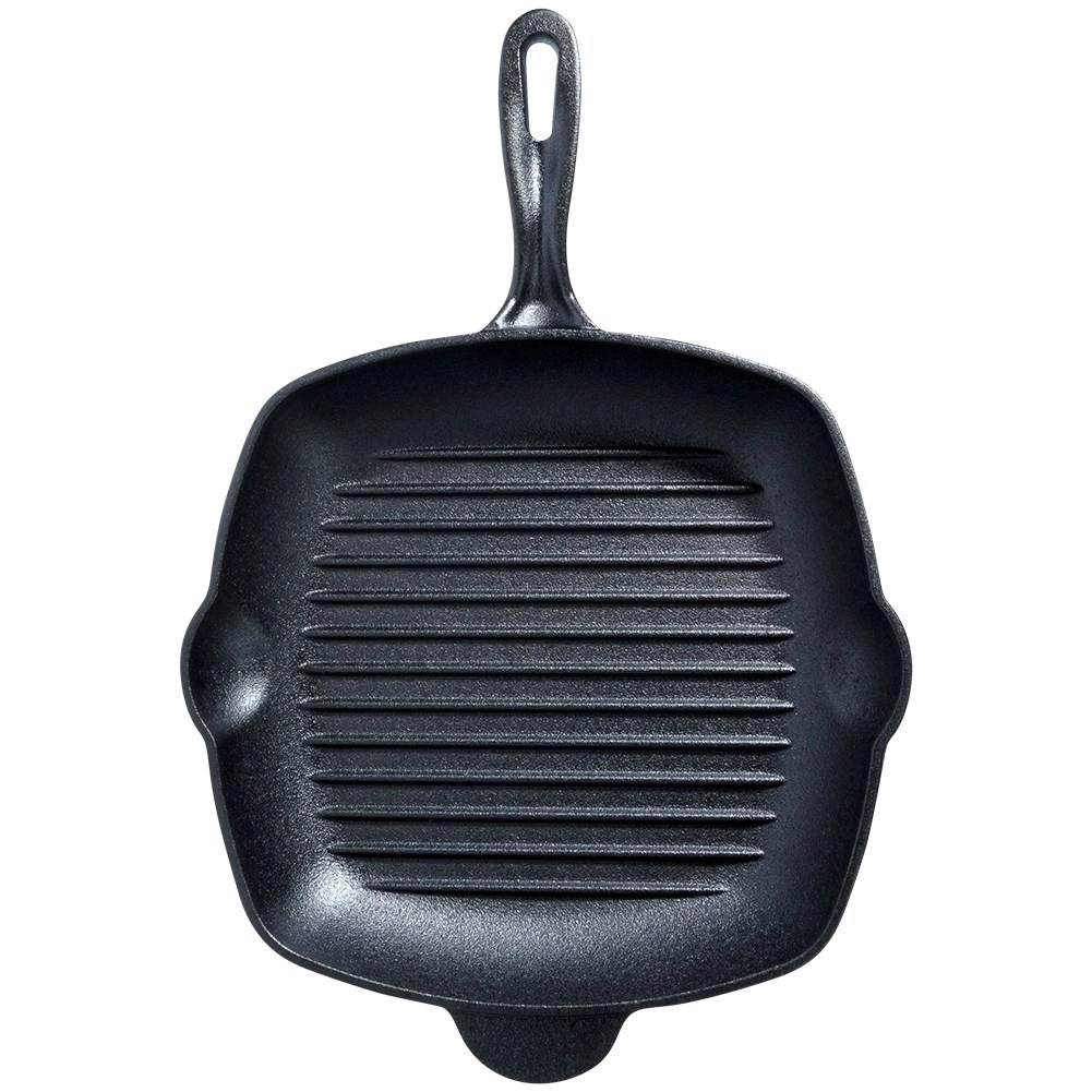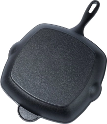Die Grillpfanne aus Gusseisen mit ausgeprägten Rillen ermöglicht Grillen wie auf einem Außengrill – auch zu Hause. Gusseisen leitet und speichert Wärme hervorragend, sodass Sie intensives Anbraten, einen saftigen Kern und schöne Grillstreifen erzielen. Praktische Ausgießer auf beiden Seiten erleichtern das Abgießen von überschüssigem Fett und das Servieren von Saucen.