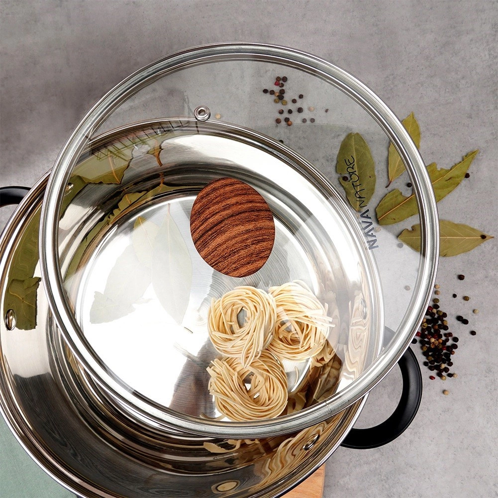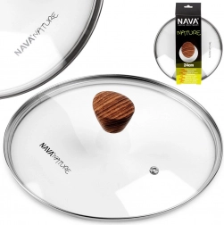 Der praktische Glasdeckel NAVA Nature mit 24 cm Durchmesser ist die ideale Ergänzung für Töpfe, Pfannen und Kasserollen gleicher Größe. Das hitzebeständige, transparente Glas ermöglicht die Kontrolle des Kochvorgangs ohne Anheben, spart Energie und hält Wärme sowie Feuchtigkeit im Topf.
