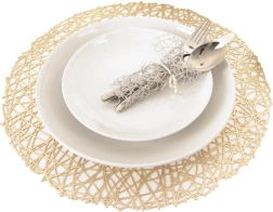 Diese runde Unterlage in Gold ist eine großartige Ergänzung für Esstisch und Couchtisch. Dank der glänzenden Oberfläche wirkt sie besonders elegant und lässt sich leicht mit klassischen wie modernen Interieurs kombinieren. Geeignet unter Teller, Besteck und Dekorationen und schützt zugleich zuverlässig die Tischplatte.