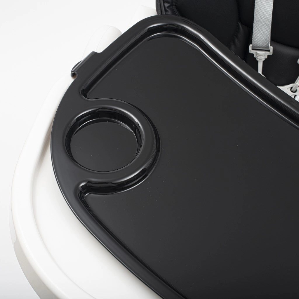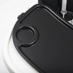 Für Sicherheit sorgen verstellbare 5‑Punkt‑Gurte, während die vielfältigen Einstellungen helfen, die ideale Position zum Essen und Ausruhen zu finden. Das doppelte, abnehmbare Tablett erleichtert das Servieren und die Pflege, die Höhe des Stuhls ist in 5 Stufen verstellbar und die Fußstütze in 3 Stufen.