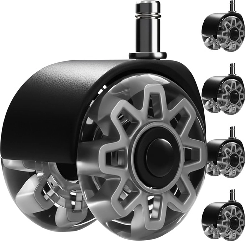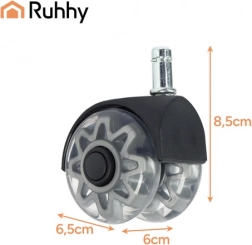 Die RUHHY 2,5"-Rollen sind für täglichen Komfort und lange Lebensdauer konzipiert. Dank Stahlkugellagern und weicher PU-Ummantelung ermöglichen sie eine ruhige und sanfte Bewegung auf Parkett, Laminat, Fliesen und Teppich, ohne Kratzer zu hinterlassen. Die Installation geht in Sekunden – alte Rollen herausziehen und die neuen einfach einstecken.