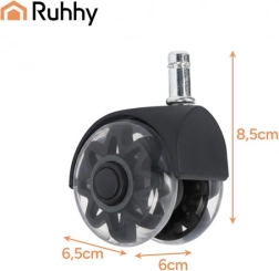 RUHHY-Rollen bringen Komfort und Sicherheit für Ihren Boden und Stuhl. Dank der weichen PU-Oberfläche rollen sie sanft über Laminat, Parkett, Fliesen und Teppich, ohne Kratzer zu hinterlassen. Stahlkugellager und eine verstärkte Konstruktion gewährleisten lange Lebensdauer und Zuverlässigkeit im täglichen Einsatz.