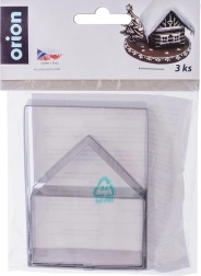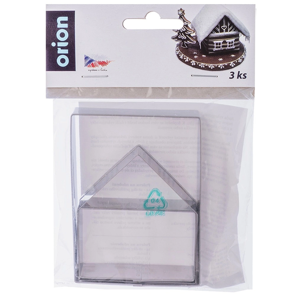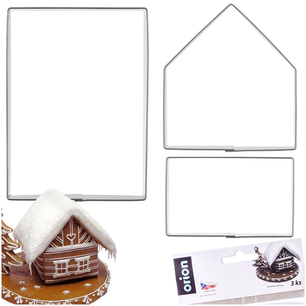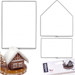Drei Formen (Haus, großer und kleiner Rechteckausstecher) für das einfache Ausstechen der Teile und den Aufbau eines eindrucksvollen Lebkuchenhauses.