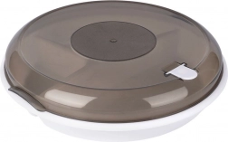 Der transparente Deckel mit öffnbarem Ventil lässt beim Erwärmen Dampf entweichen, verhindert Schmutz in der Mikrowelle und schützt Speisen unterwegs.