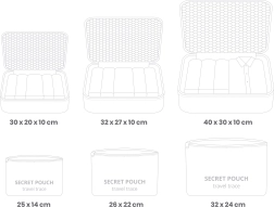 Die Organizer helfen beim Sortieren von Hosen, T-Shirts, Unterwäsche und Accessoires, trennen Schuhe von Kleidung und erleichtern Sicherheitskontrollen am Flughafen. Dank verschiedener Größen passen Sie den Inhalt jeder Reise an – vom Wochenendtrip bis zum langen Urlaub.