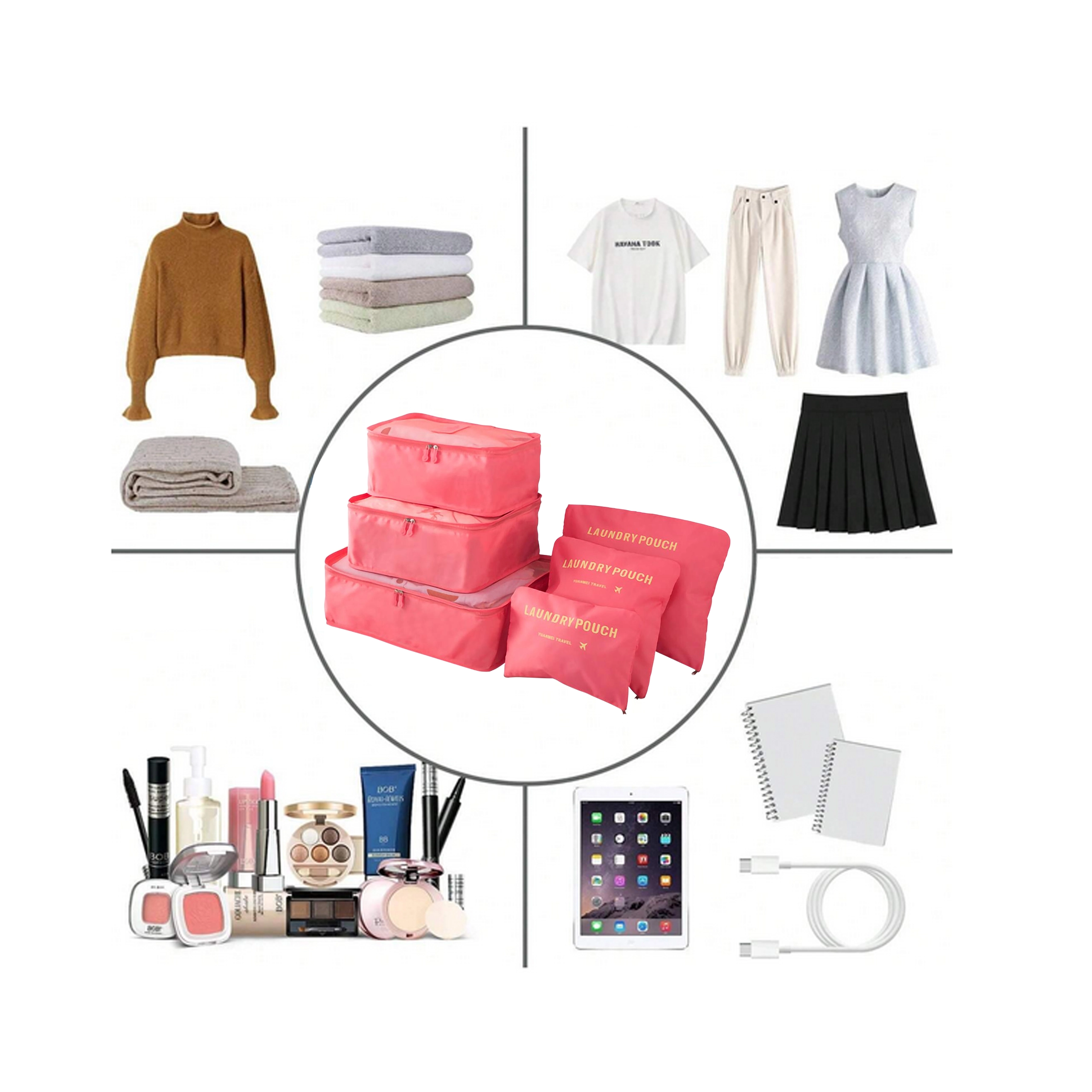 Praktisches Set aus 6 Reise-Organizern in verschiedenen Größen hält Ihren Koffer übersichtlich und platzsparend. Dank Reißverschlüssen und leichtem Design teilen Sie Kleidung und Accessoires mühelos auf, sparen Platz und finden alles schnell wieder. Ideal für Urlaub und Geschäftsreisen – Trennung von sauberer und schmutziger Wäsche, bessere Übersicht im Gepäck und effiziente Raumnutzung.