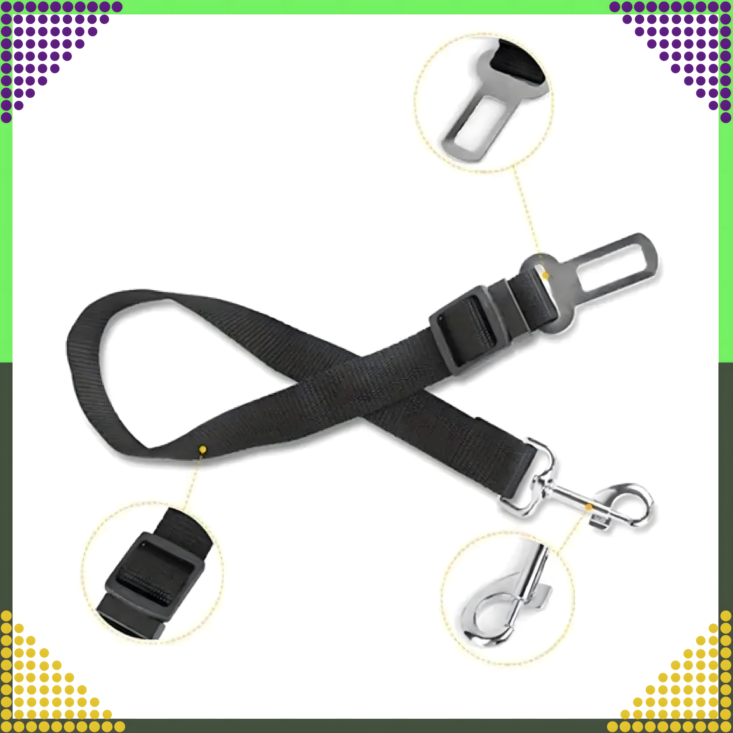 Der strapazierfähige Nylonriemen und Metallkomponenten gewährleisten Zuverlässigkeit bei jeder Fahrt. Die Lösung ist mit den meisten Automodellen kompatibel und hilft, den Fahrzeuginnenraum sowie die Reise ruhig und sicher zu halten.