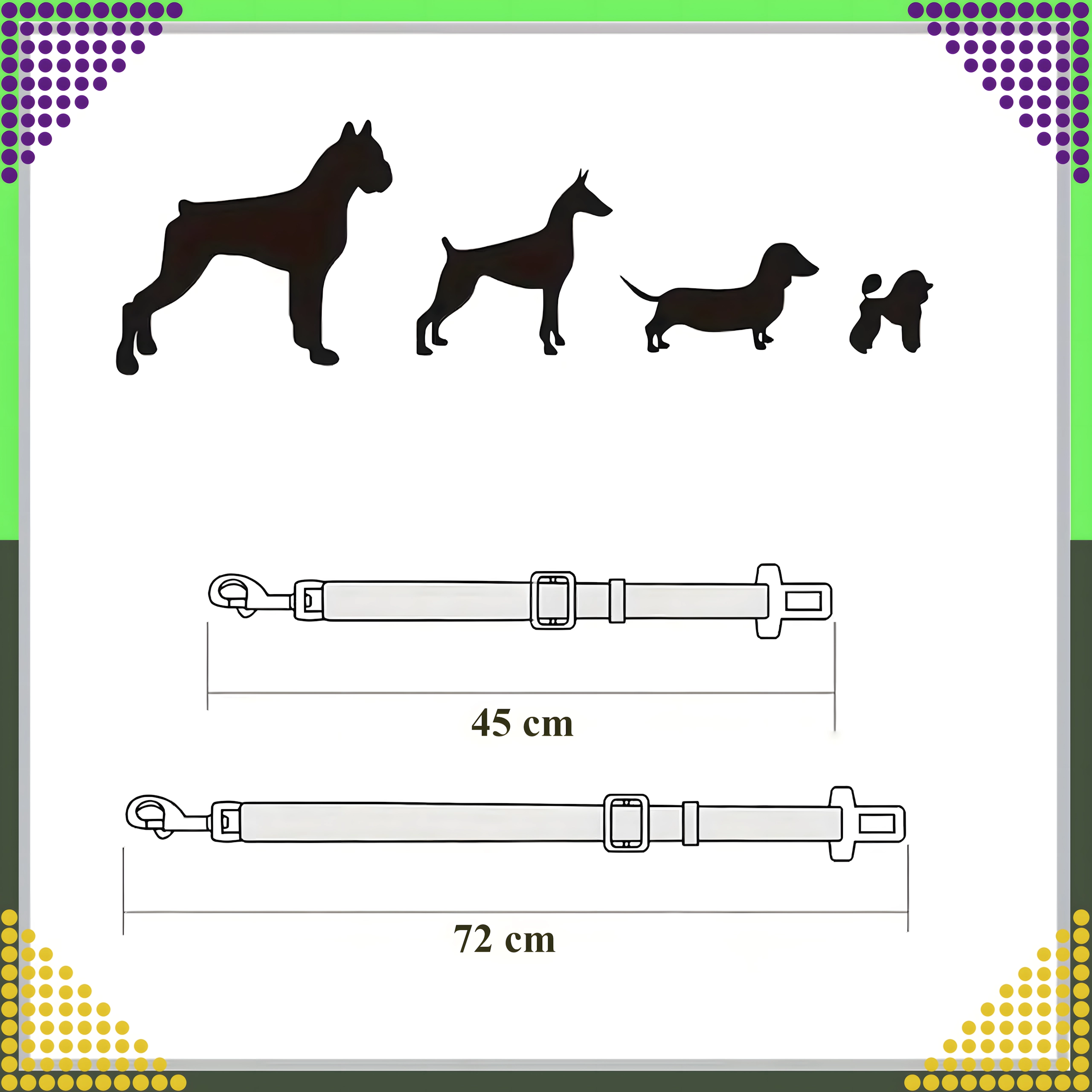 • Stufenlose Längeneinstellung – 45–72 cm für unterschiedliche Haustiergrößen.