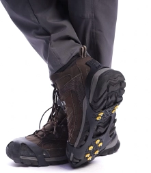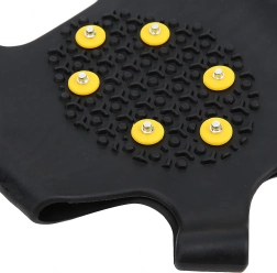 Zehn Metallspikes an jedem Überzieher gewährleisten zuverlässige Haftung und Stabilität beim Gehen auf vereisten oder festgetretenen Schneeflächen.