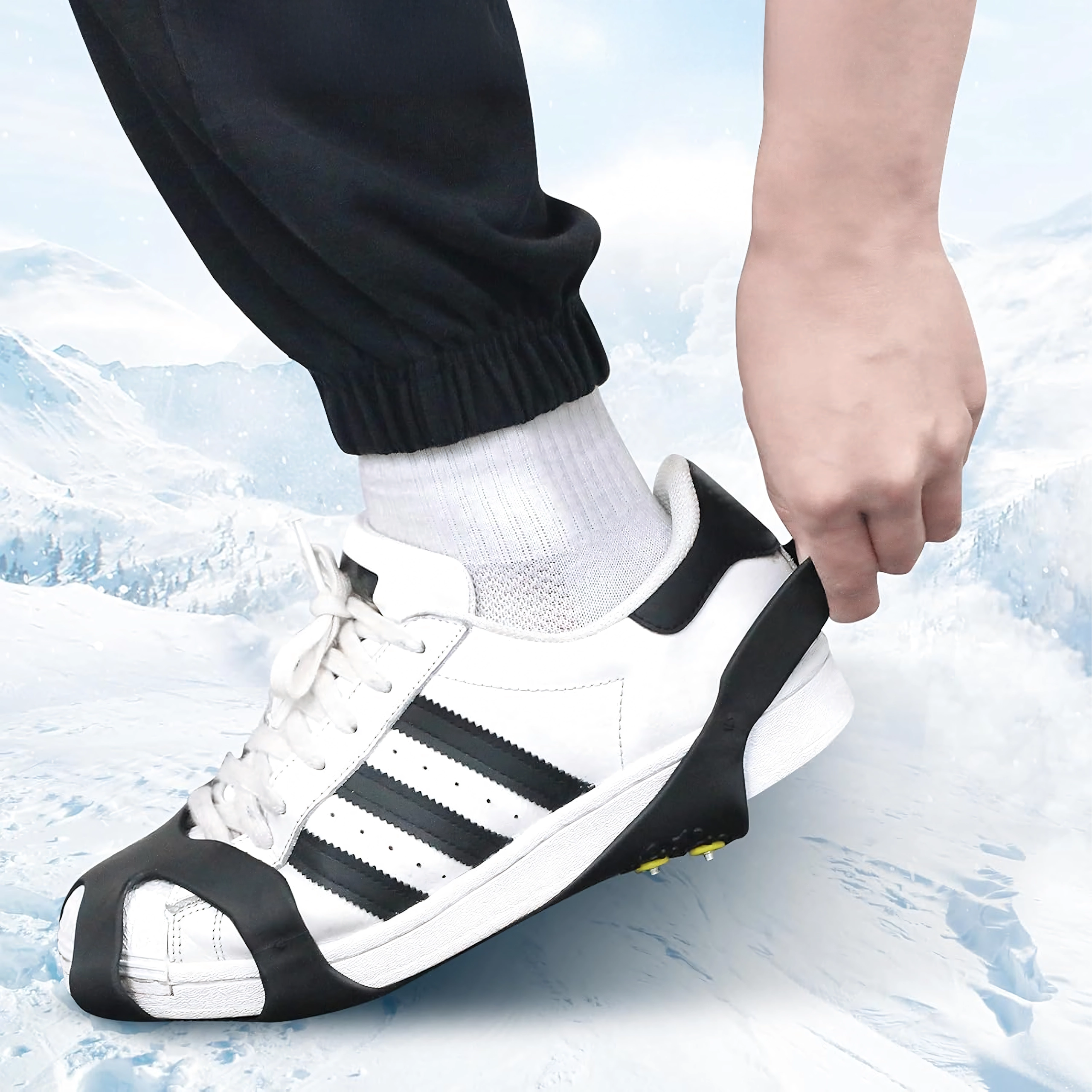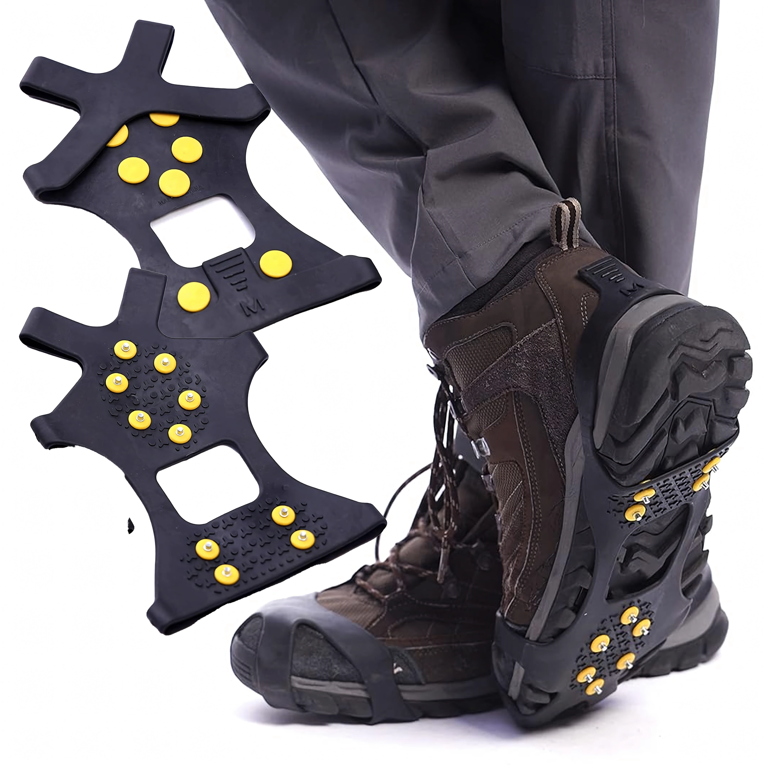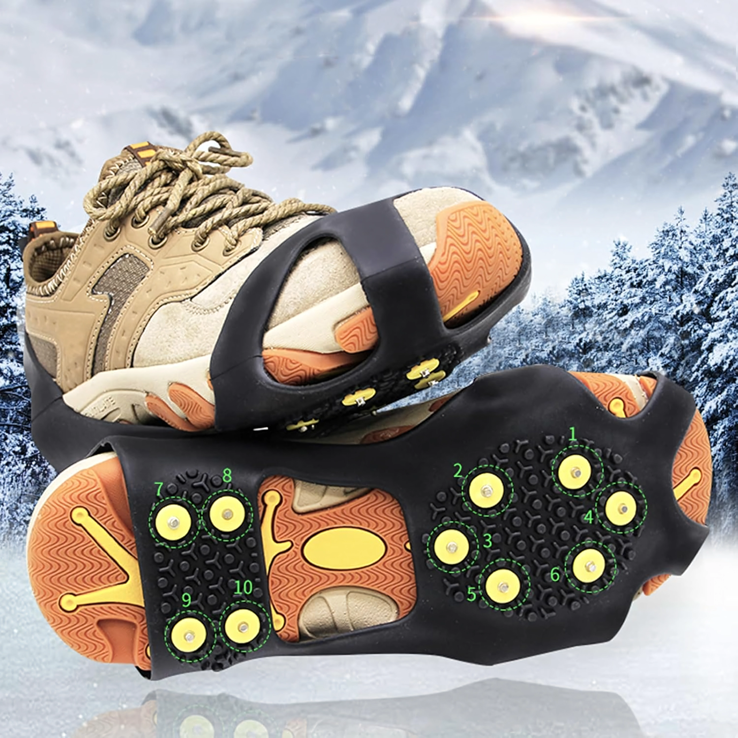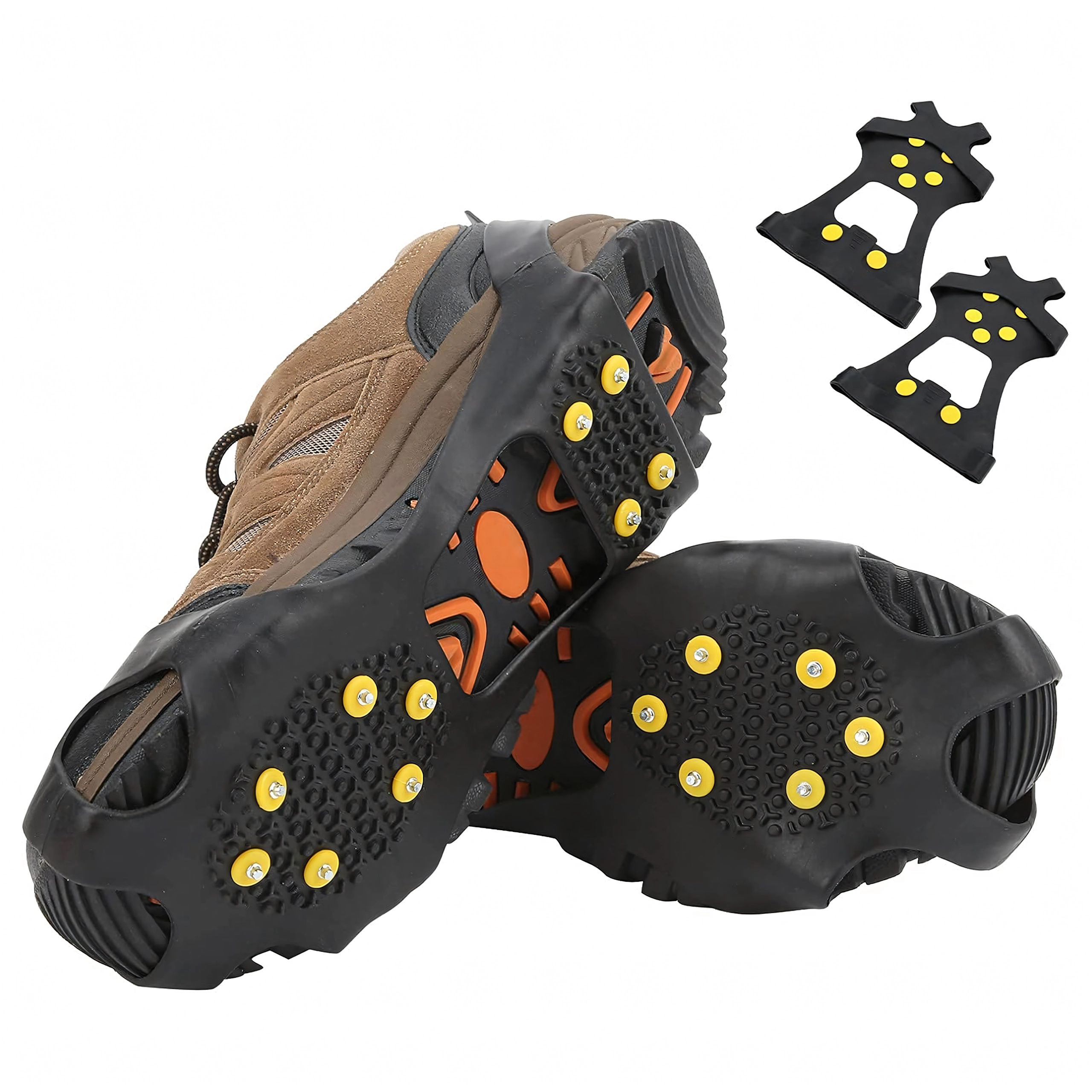 Sie suchen eine einfache Möglichkeit, die Geh-Sicherheit im Winter zu erhöhen? Diese rutschfesten Überzieher mit 10 Metallspikes ergänzen die Sohle Ihrer Schuhe um starke Traktion auf Eis, festgefahrenem Schnee und matschigen Untergründen. Das feste, zugleich flexible TPE-Material lässt sich leicht über Spitze und Ferse ziehen, bleibt an Ort und Stelle und rutscht nicht.