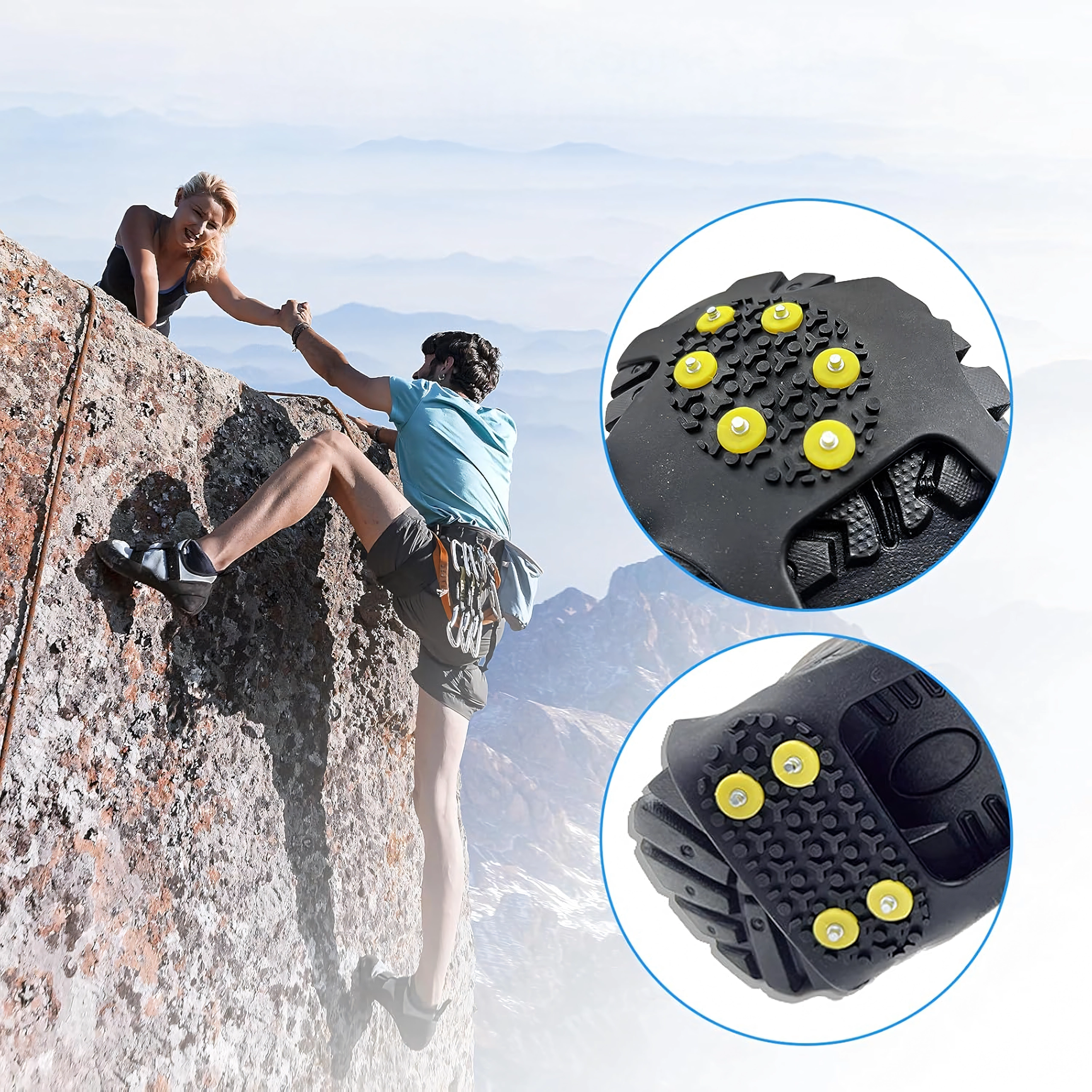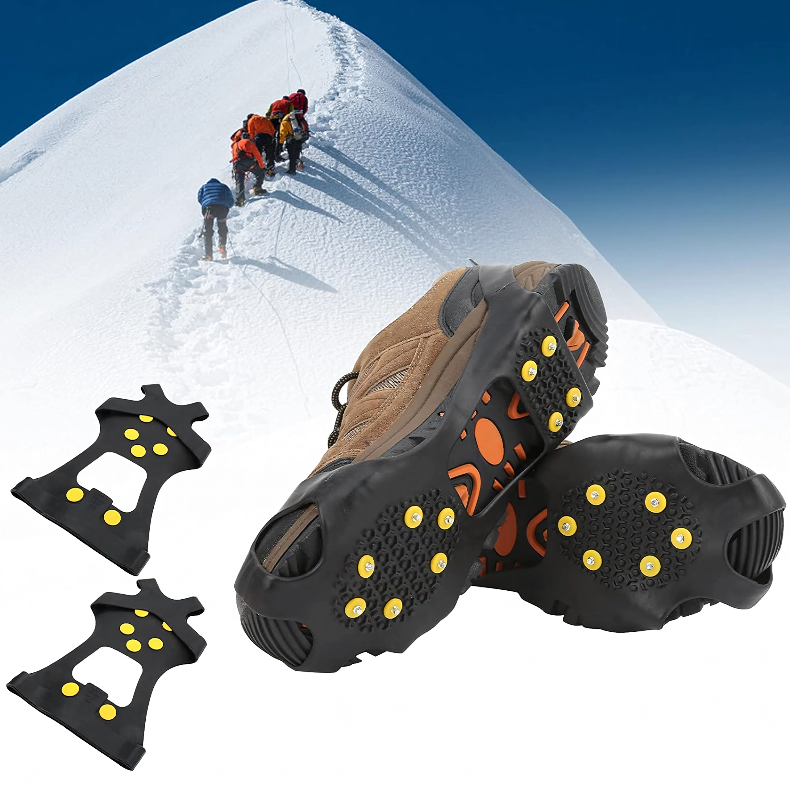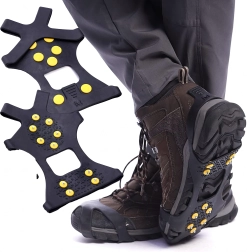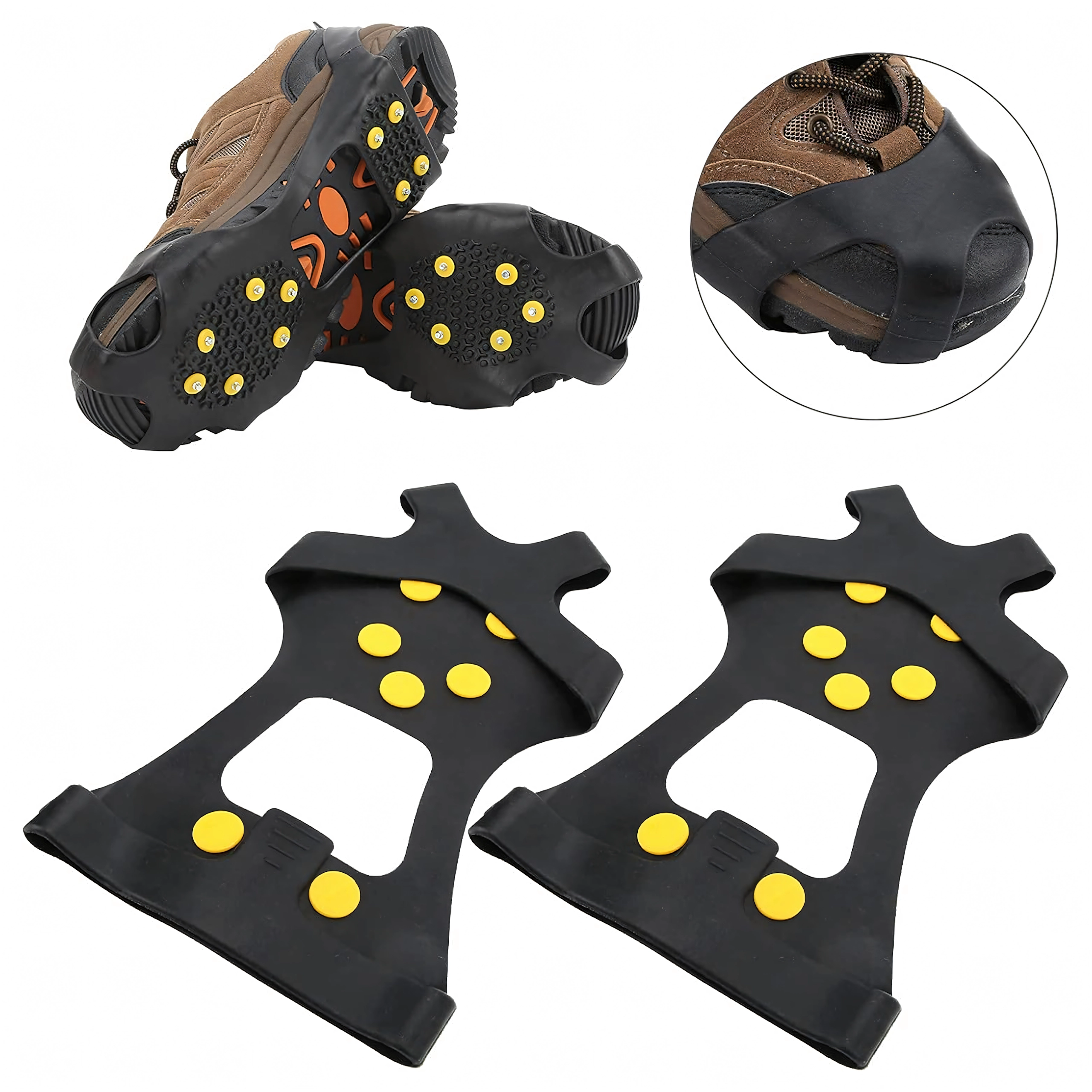 Sie suchen eine einfache Möglichkeit, die Geh-Sicherheit im Winter zu erhöhen? Diese rutschfesten Überzieher mit 10 Metallspikes ergänzen die Sohle Ihrer Schuhe um starke Traktion auf Eis, festgefahrenem Schnee und matschigen Untergründen. Das feste, zugleich flexible TPE-Material lässt sich leicht über Spitze und Ferse ziehen, bleibt an Ort und Stelle und rutscht nicht.