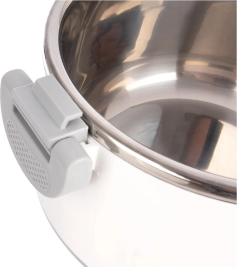 Das Innere aus Edelstahl ist glatt und leicht zu reinigen, der äußere Kunststoffmantel in Weiß ist leicht und widerstandsfähig gegen den täglichen Gebrauch.