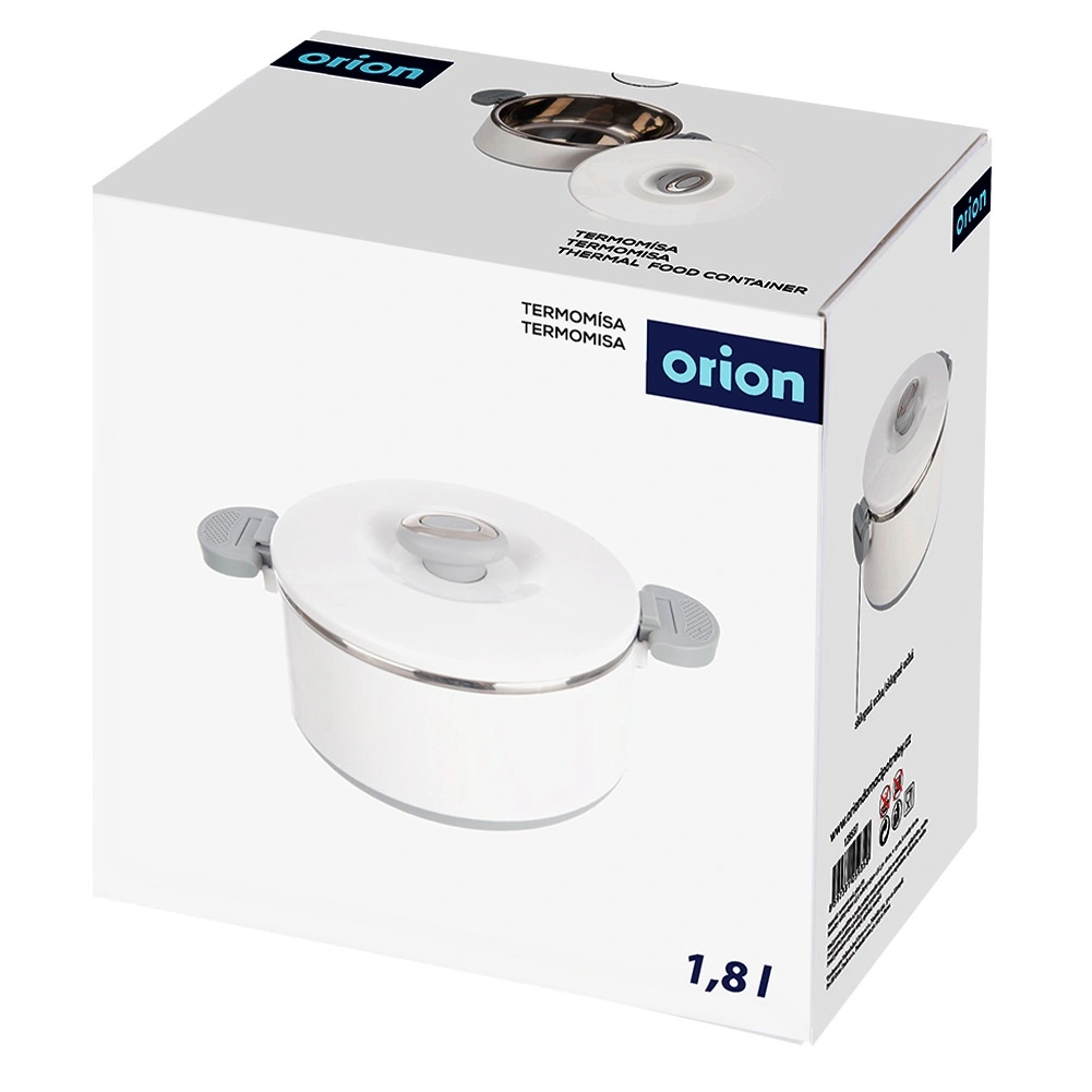 Bewahren Sie Ihr Mittagessen dank der Thermoschüssel mit 1,6 l Volumen in idealer Temperatur auf. Der innere Edelstahleinsatz sorgt für Hygiene und hervorragende Wärmedämmung, während der robuste weiße Mantel und graue Griffe die Handhabung erleichtern. Eine großartige Lösung für Suppen, Soßen und Desserts – im Sommer auch ideal zur Aufbewahrung von Eiscreme.