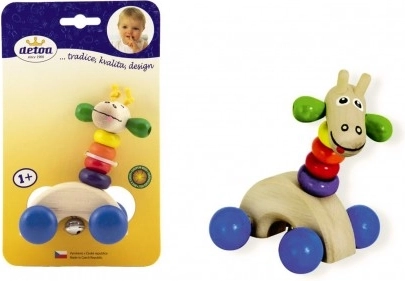 Detoa Holz-Giraffe auf Rädern ist ein ideales Spielzeug zur Förderung der Feinmotorik bei Kindern. Diese rollende Giraffe mit buntem Hals bringt Freude und erfüllt gleichzeitig alle EU-Sicherheitsanforderungen.