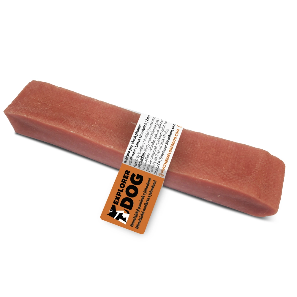 Himalaya-Käsestangen werden aus der Milch freilaufender Kühe hergestellt und dezent mit Erdbeerextrakt verfeinert. Durch den traditionellen Prozess des langen Kochens, Pressens und Räuchertrocknens über 20–30 Tage erhält der Snack eine außergewöhnliche Härte und einen feinen Rauchgeschmack, der Hunde zu langem und zufriedenem Kauen animiert.