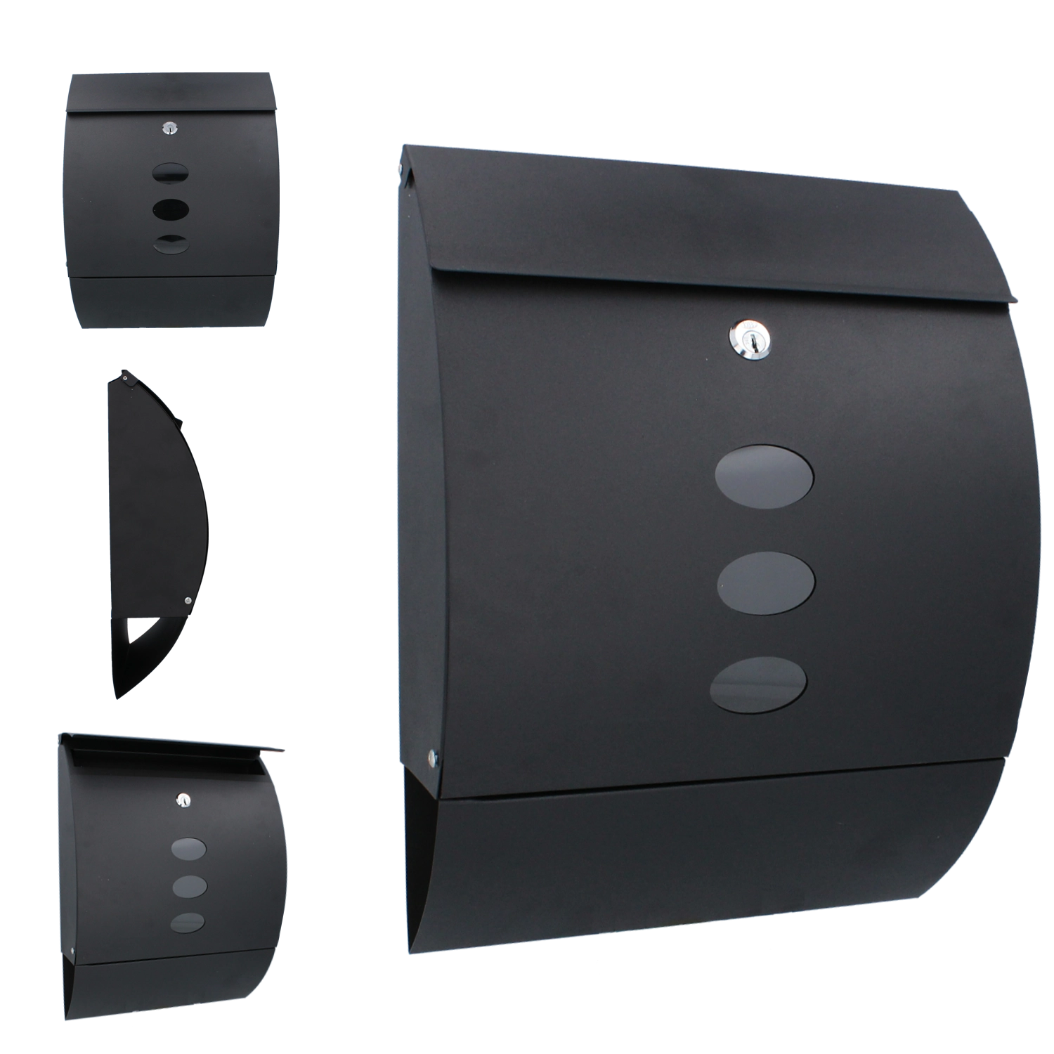 Drei ovale Sichtfenster ermöglichen es, schnell zu erkennen, ob Post vorhanden ist, ohne den Briefkasten öffnen zu müssen.