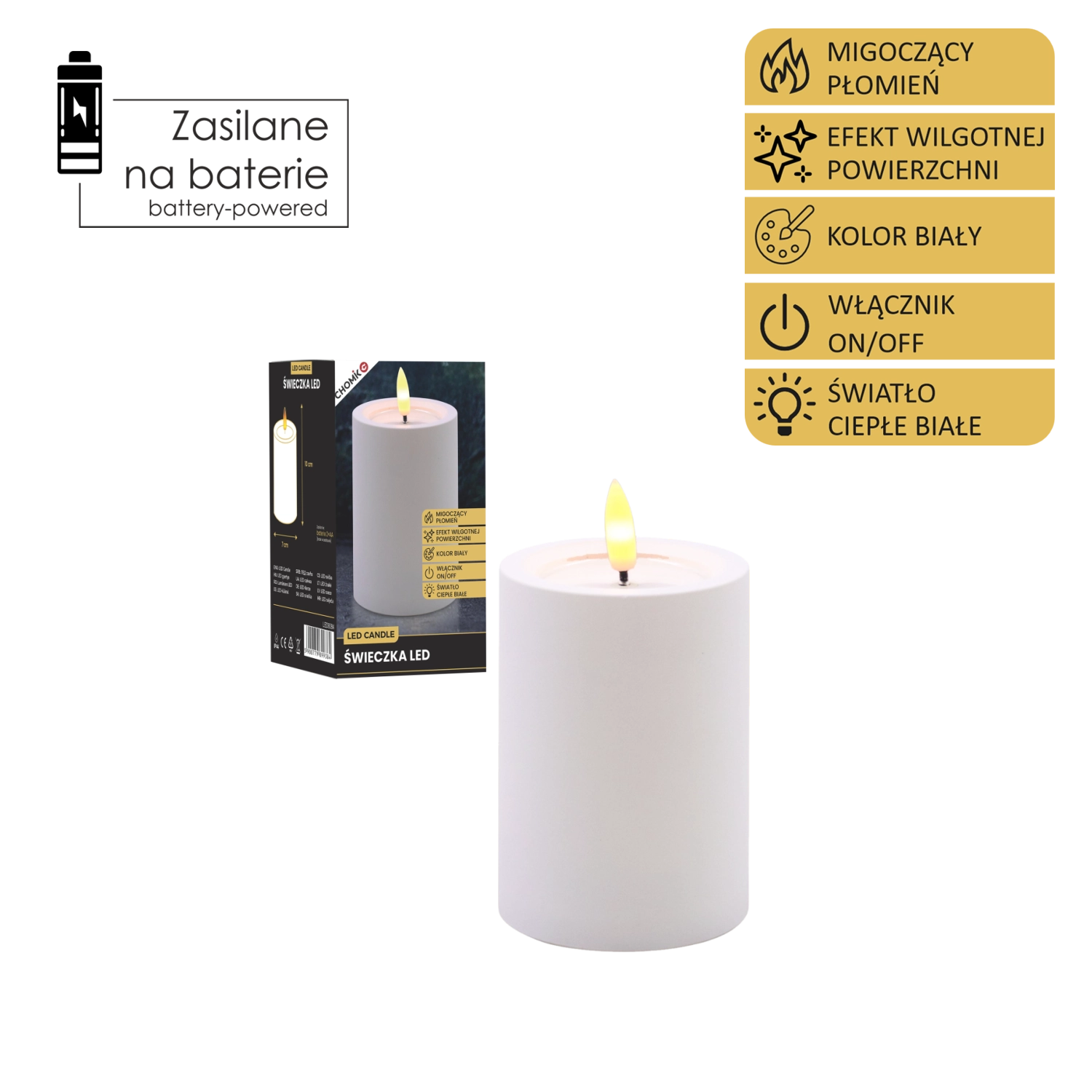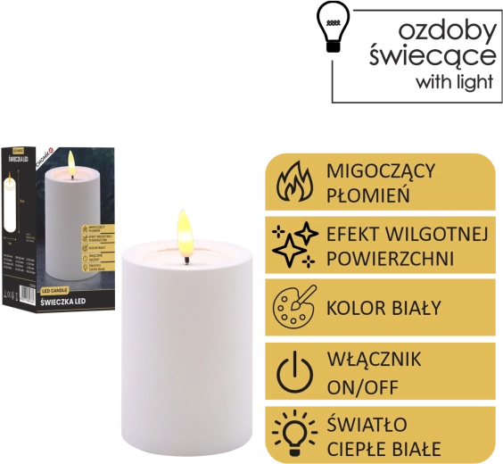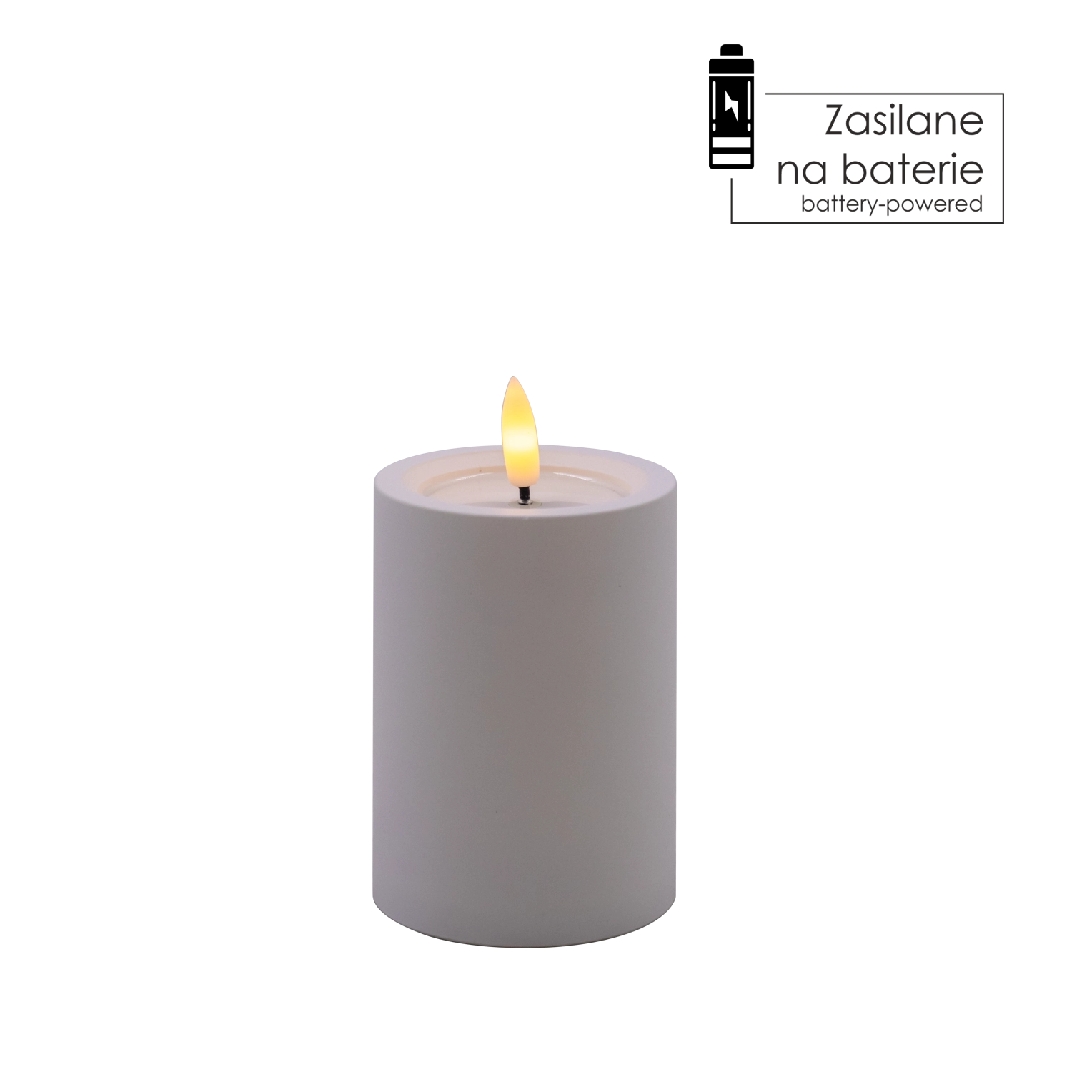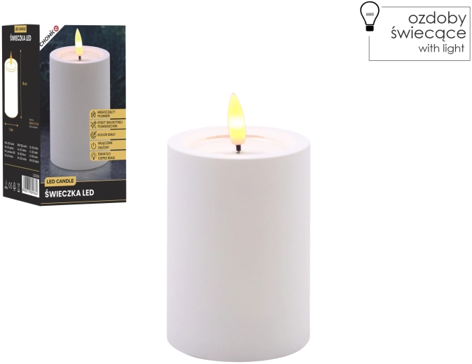 LED-Kerze weiß 7 × 10 cm mit flackernder Flamme