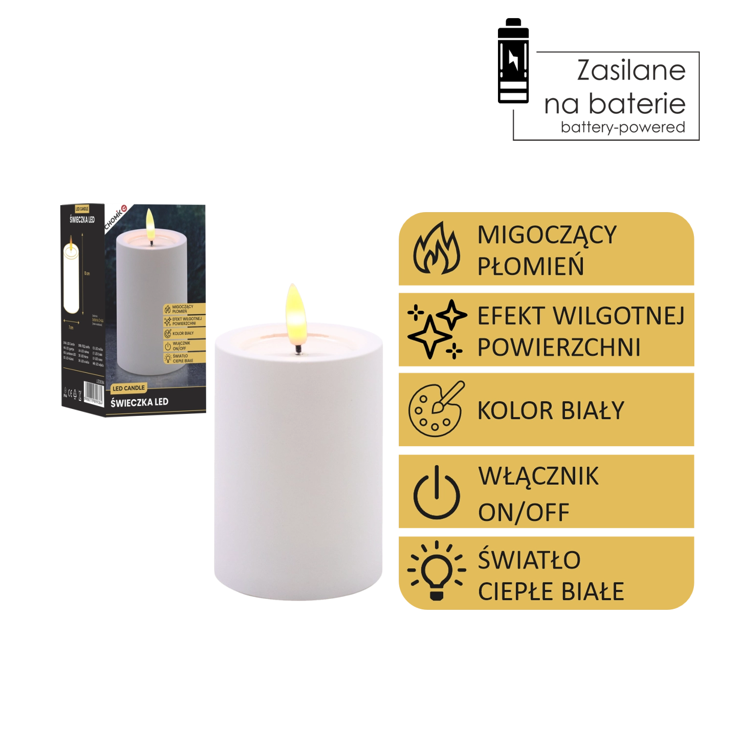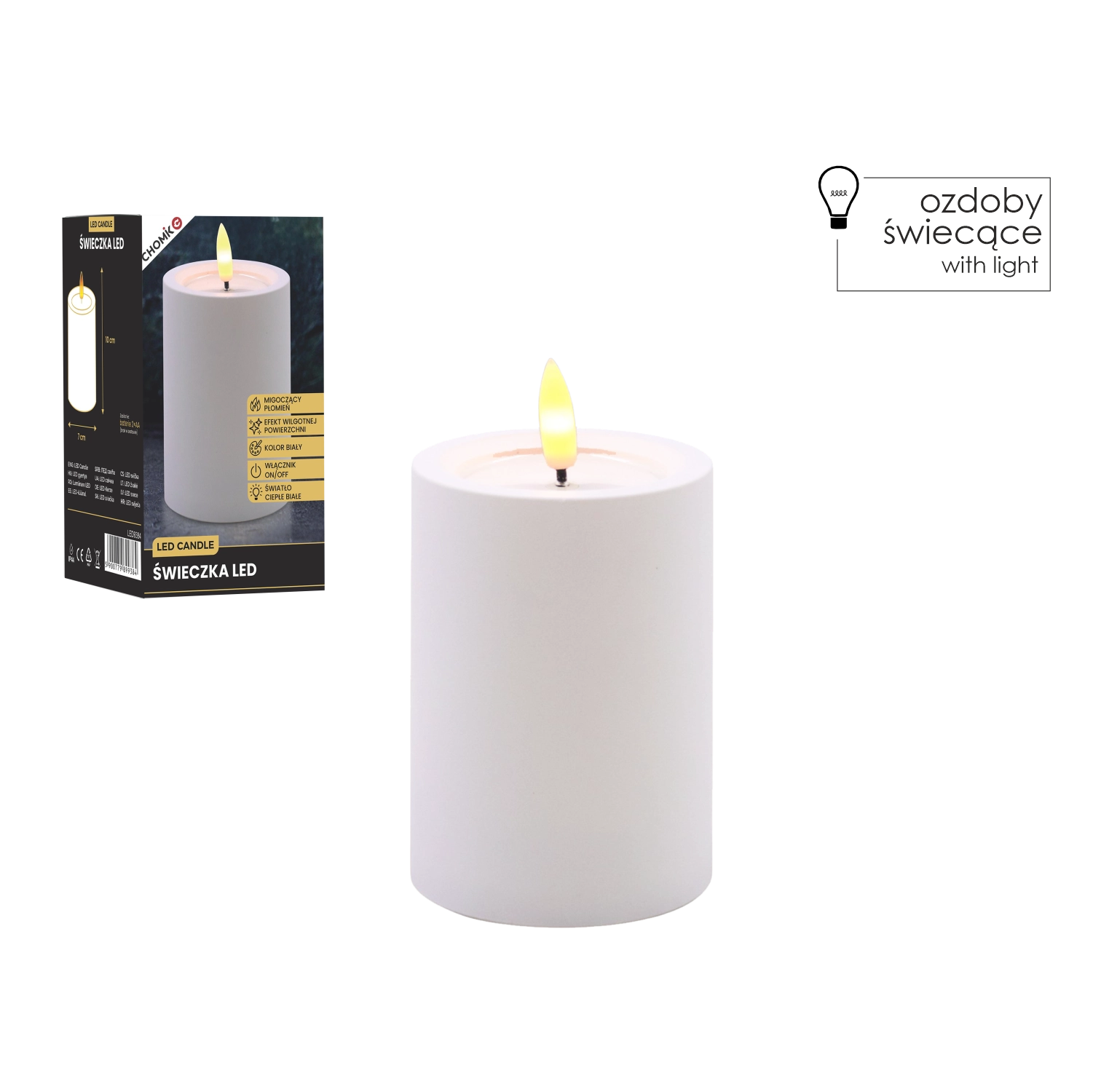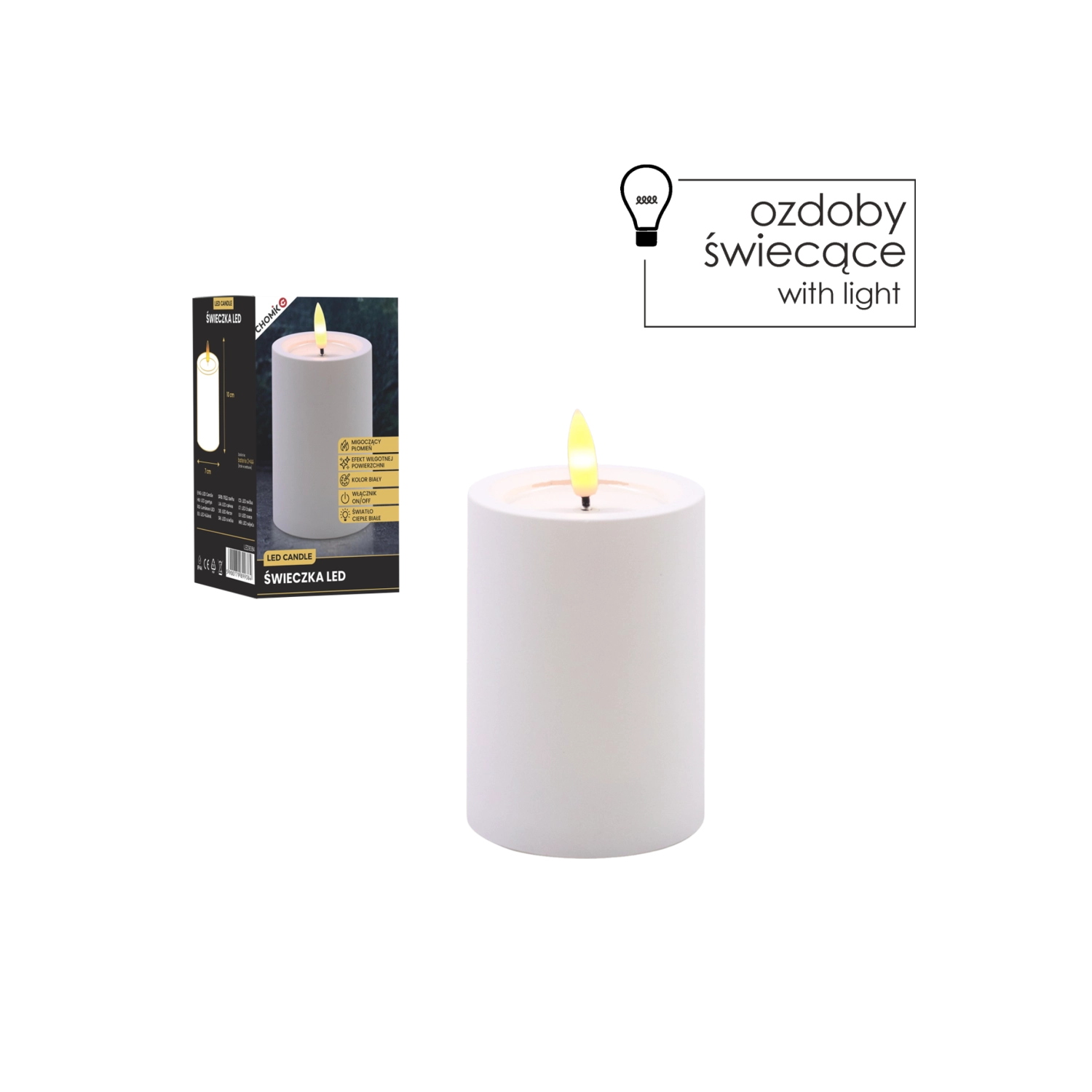 LED-Kerze weiß 7 × 10 cm mit flackernder Flamme
