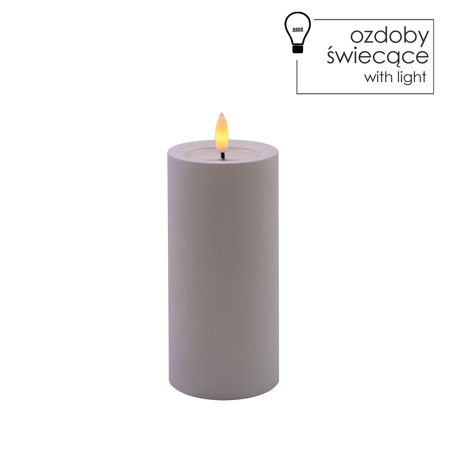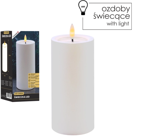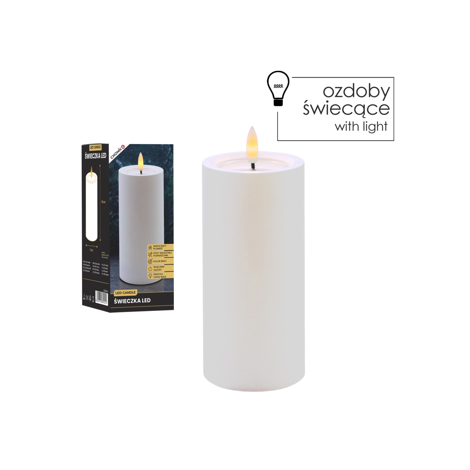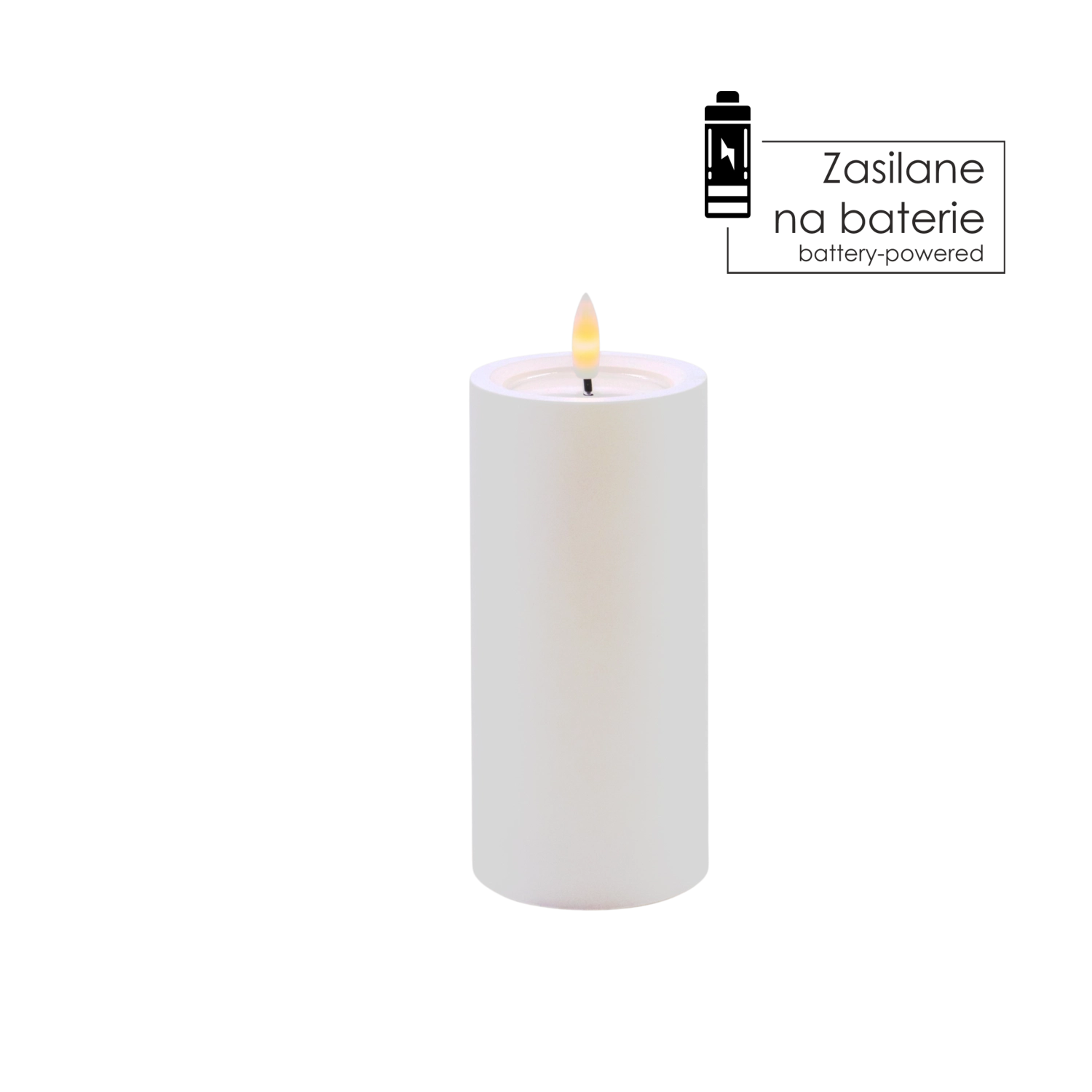 LED-Kerze weiß 7 × 15 cm mit flackernder Flamme