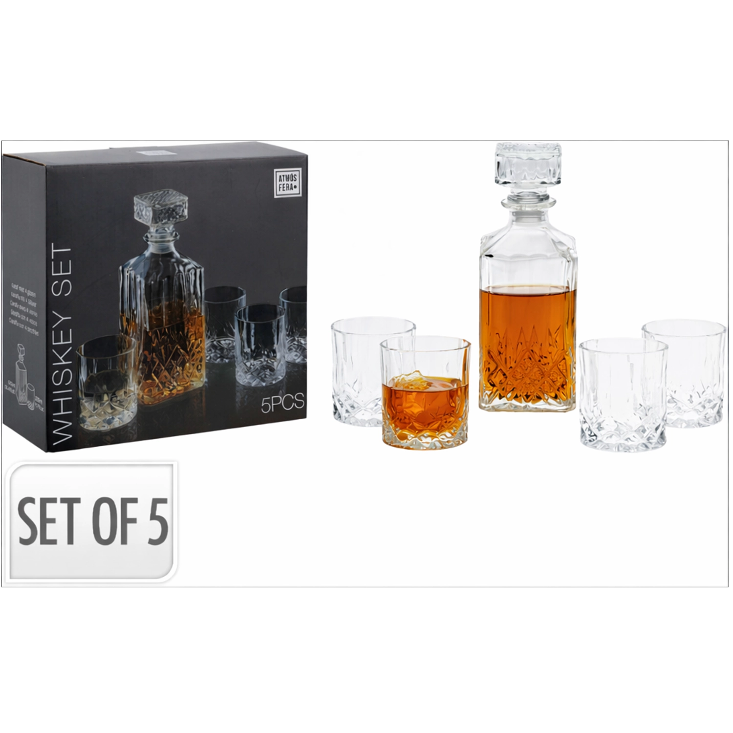 Dieses repräsentative Set enthält eine Karaffe mit 900 ml Fassungsvermögen und vier Gläser à 230 ml. Dickes, klares Glas mit dekorativer Reliefstruktur verleiht dem Tischdecken Stil und lässt die Farben von Whisky, Cognac oder Brandy erstrahlen. Dank des Korkverschlusses der Karaffe behalten Ihre Lieblingsspirituosen ihr Aroma länger.