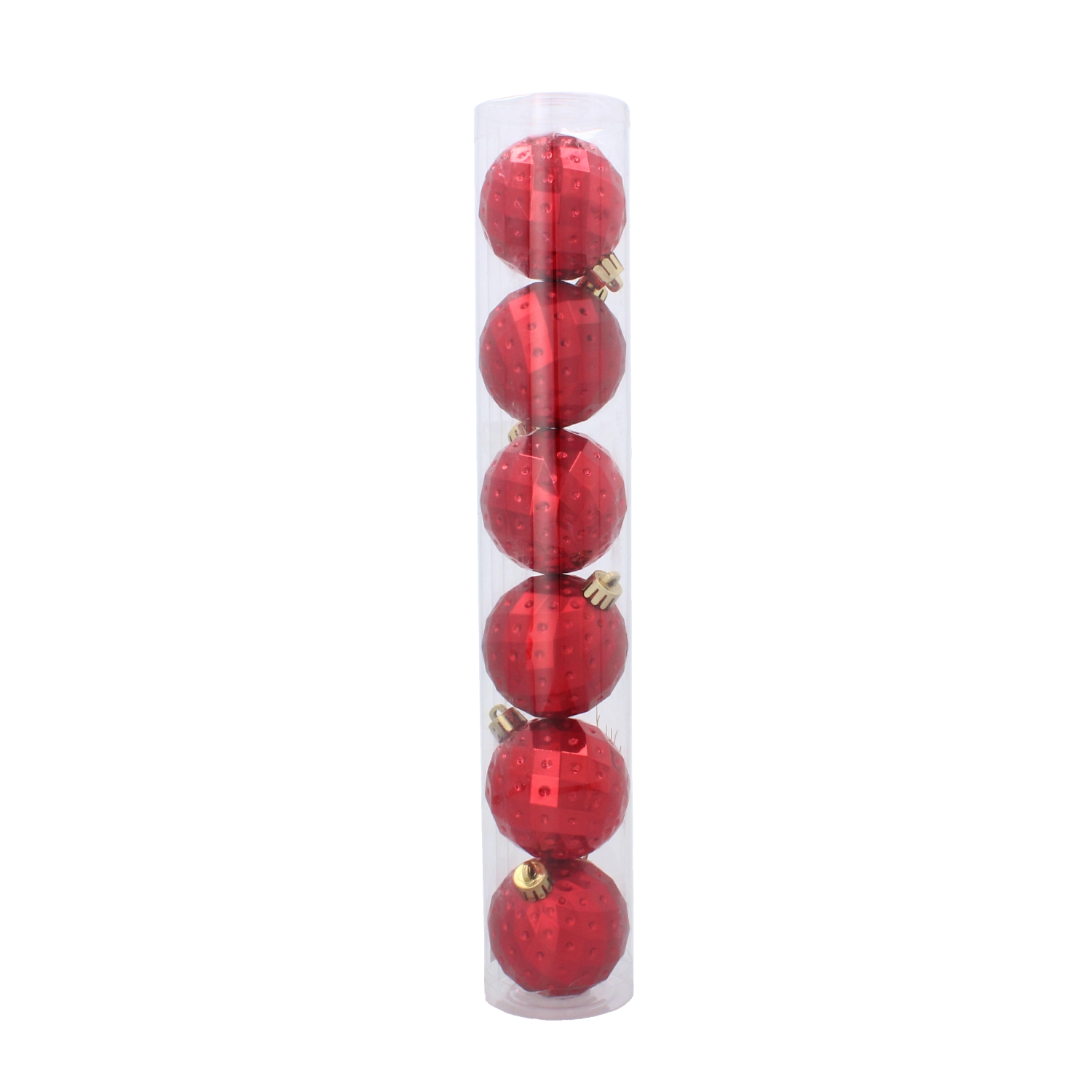 Verleihen Sie Ihrem Zuhause festlichen Zauber mit einem Set robuster Weihnachtskugeln, das traditionelle Farben mit einer modernen Textur verbindet. Glänzende und matte Oberflächen mit facettiertem Muster reflektieren das Licht wunderschön und schaffen eine festliche Atmosphäre.