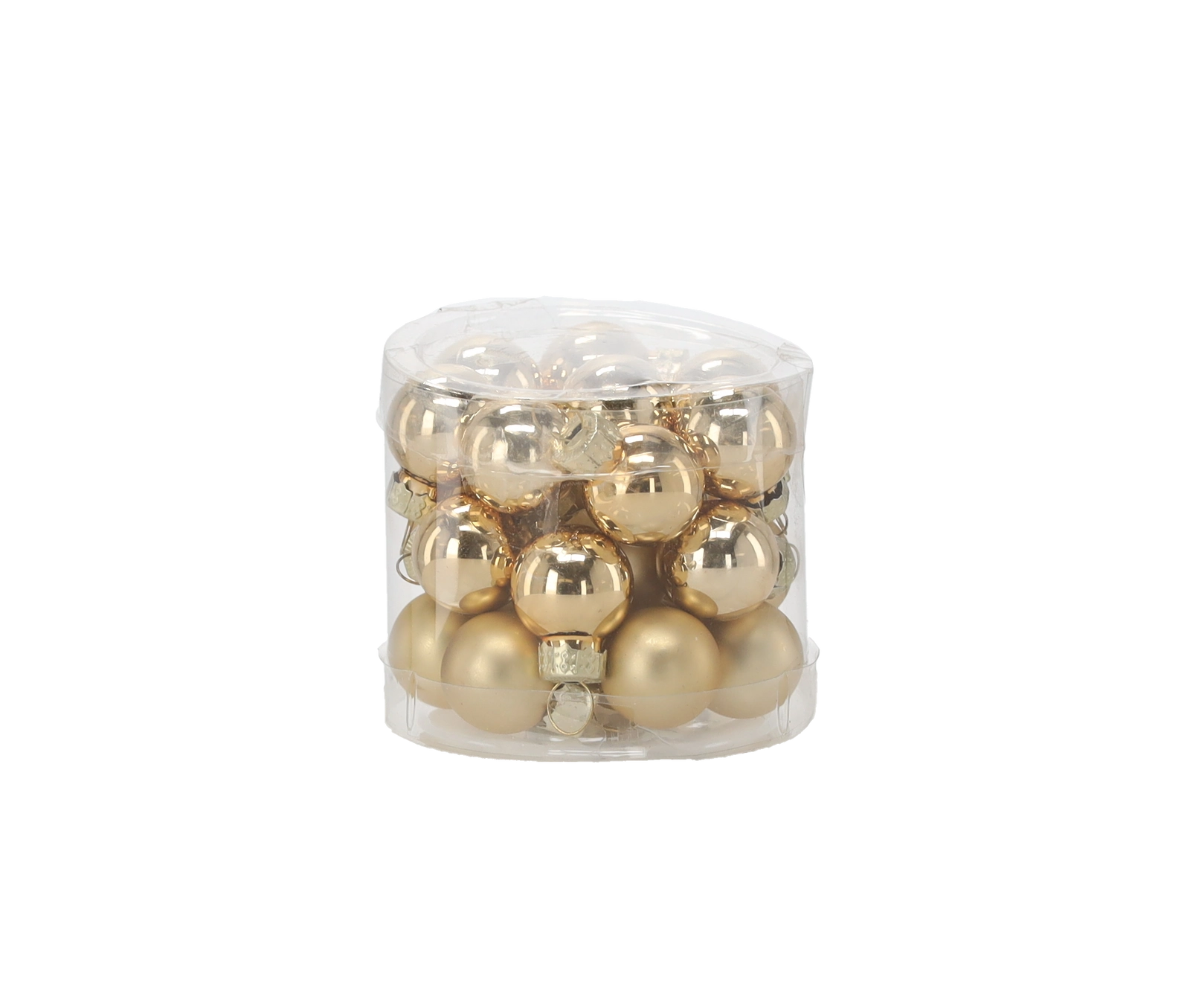 Veredeln Sie Ihre Weihnachtsdekoration bis ins letzte Detail. Dieses kompakte Set aus Glaskugeln mit 2 cm Durchmesser vereint glänzende und matte Oberflächen in einem harmonischen Farbmix, der das Licht der Lichterketten wunderschön reflektiert und dem Interieur eine behagliche Atmosphäre verleiht.