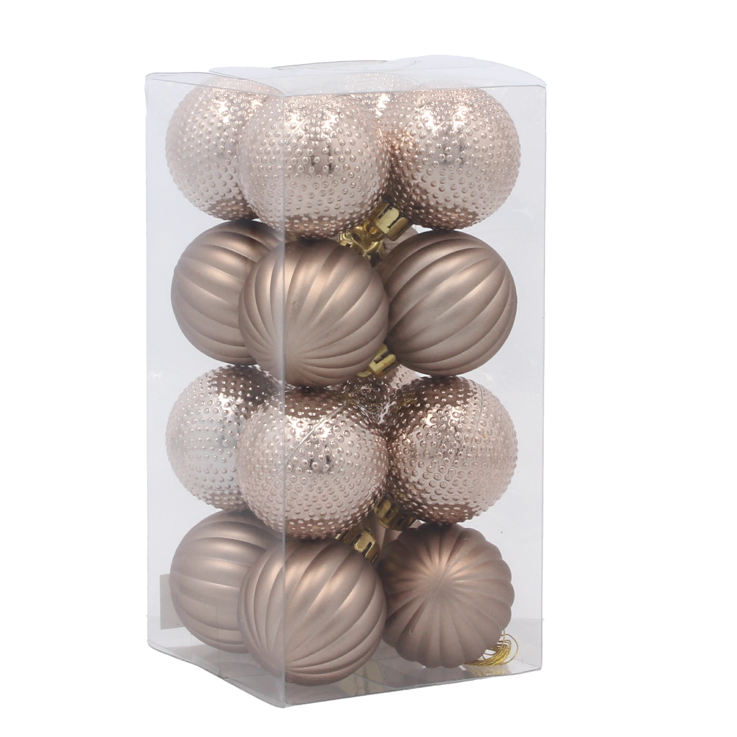 Dank des robusten Kunststoffs sind die Kugeln leicht und schonend für die Zweige, zugleich jedoch stabil und langlebig für wiederholte Verwendung. Mit dem Set aus 16 Stück gelingt Ihnen mühelos eine ausgewogene Komposition am Baum, an Kränzen und in festlichen Arrangements.