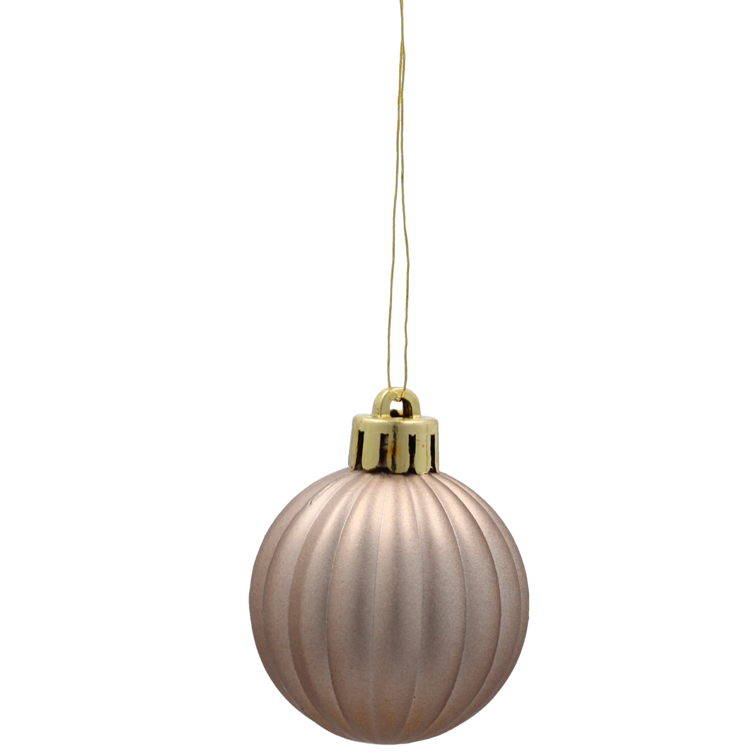 Die Kombination aus geprägten und gerippten Kugeln erzeugt ein Spiel aus Licht und Schatten, das jeden Baum belebt und der Dekoration Tiefe verleiht.