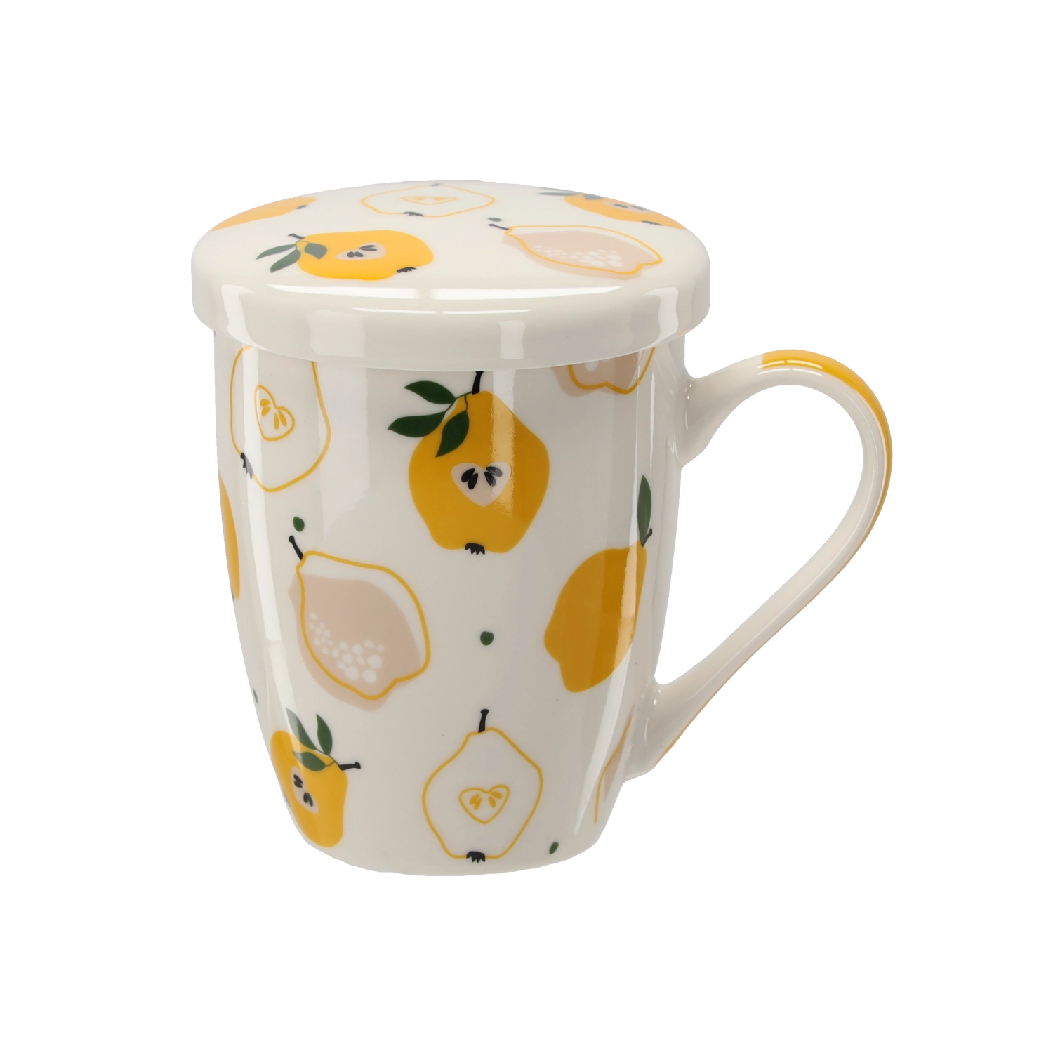 Die Tasse besteht aus hochwertigem Porzellan mit glanzvoller Glasur für eine leichte Pflege. Der ergonomisch geformte Henkel sorgt für einen sicheren und bequemen Griff. Farbige Obstmotive verleihen Ihrer Küche eine verspielte Note und verschönern jede Tasse Tee.