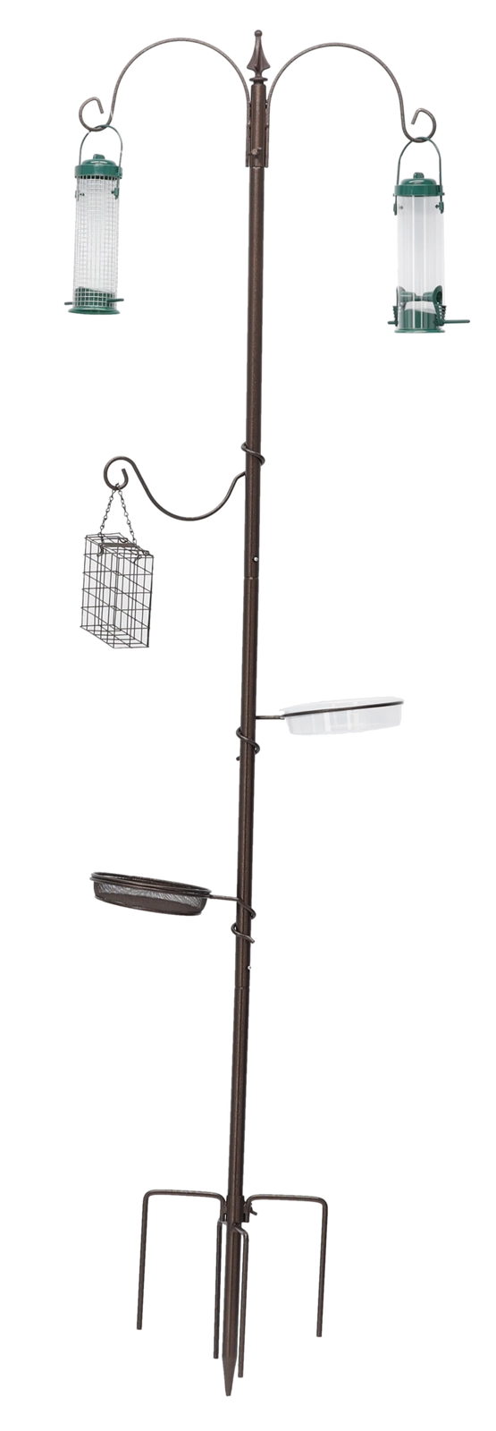Das multifunktionale Design ist vorbereitet für Samen, Sonnenblumenkerne, Nüsse und Fettblöcke und bietet zudem Platz für Wasser. Im Lieferumfang sind Erdanker zur Befestigung im Boden enthalten, die die Stabilität auch bei Wind deutlich erhöhen. Die Montage ist schnell und intuitiv, die Demontage erleichtert die Einlagerung außerhalb der Saison.