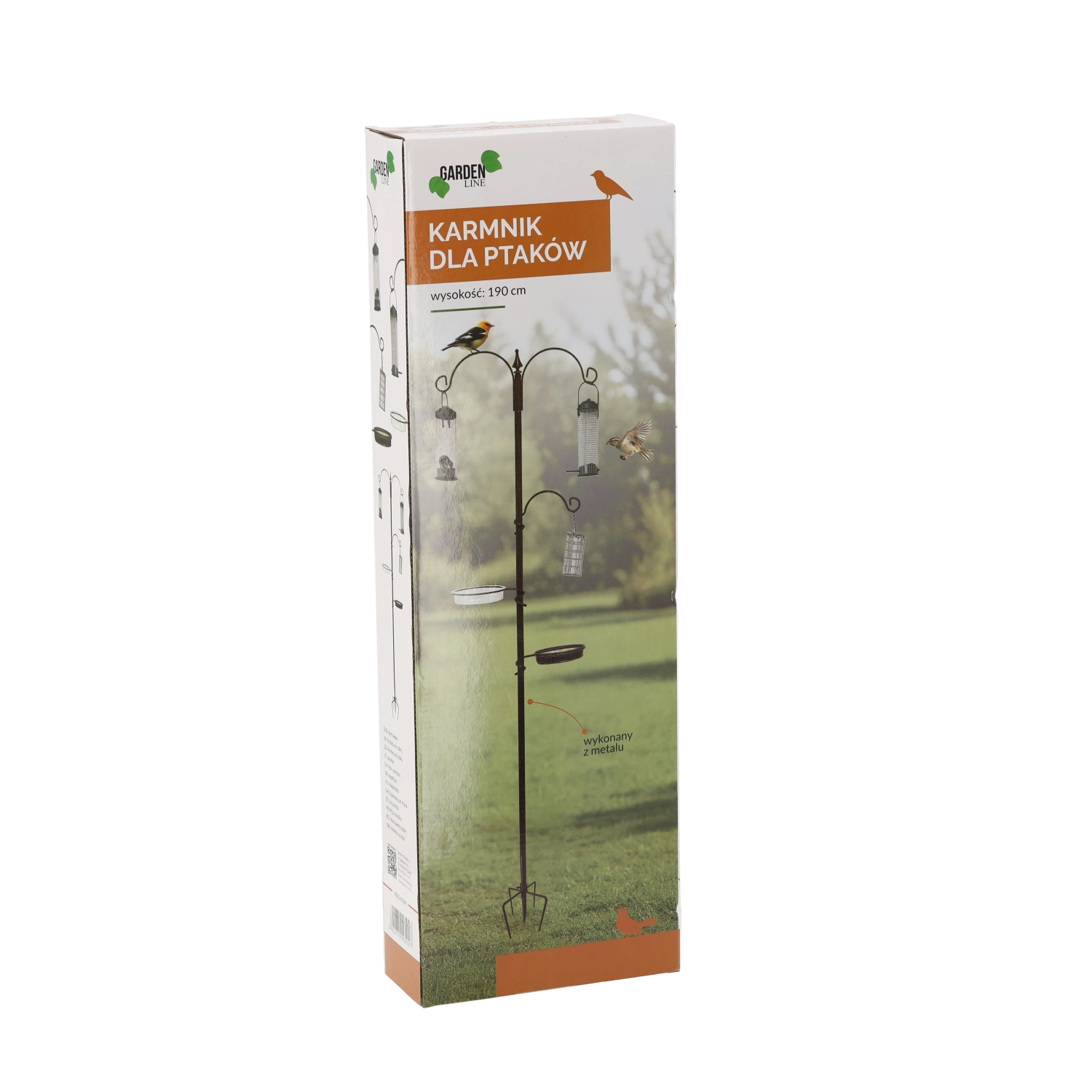 Elegante Garten-Vogelfutterstation mit einer Höhe von 190 cm – ideal für die ganzjährige Versorgung von Wildvögeln. Dank ihrer Höhe bietet sie Vögeln einen sicheren Futterplatz und ermöglicht Ihnen eine bequeme Beobachtung. Die stabile Konstruktion aus Edelstahl gewährleistet Witterungsbeständigkeit, lange Lebensdauer und hohe Standfestigkeit dank der im Lieferumfang enthaltenen Erdanker. Die multifunktionale Lösung ermöglicht die Ausgabe von verschiedenen Futtersorten und Wasser und überzeugt durch die einfache Montage und Demontage.