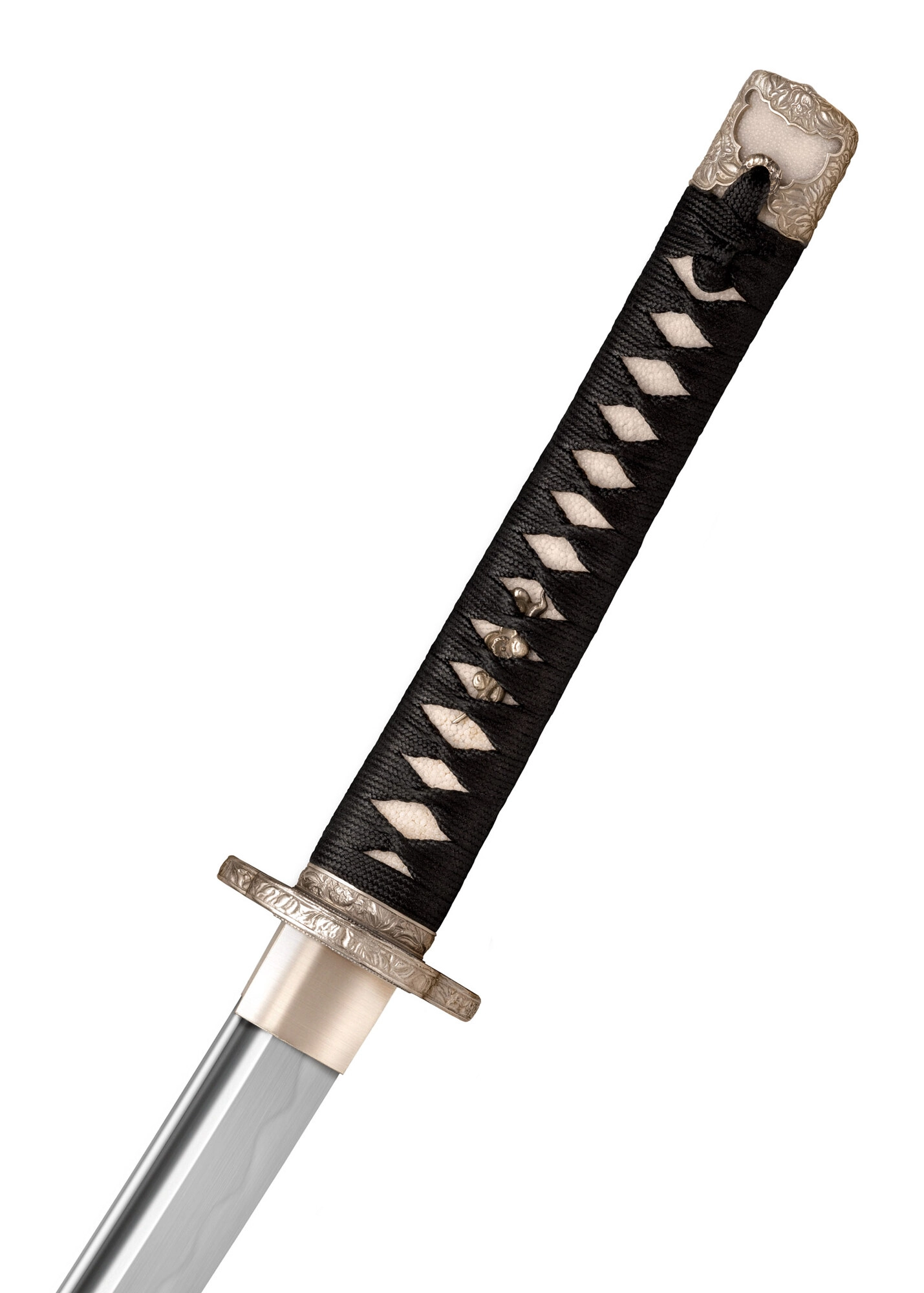 Die Cold Steel Flower Katana ist eine Hommage an Naturmotive, die tief in der japanischen Kultur verwurzelt sind. Ein stilisiertes Blumenmuster in Silber-Nickel-Ausführung schmückt Tsuba und Kashira und verleiht dem Schwert einen markanten, zugleich kultivierten Auftritt. Die Klinge aus hochwertigem 1060-Kohlenstoffstahl mit konvexem Schliff bietet hervorragende Schneidleistung und Stabilität.