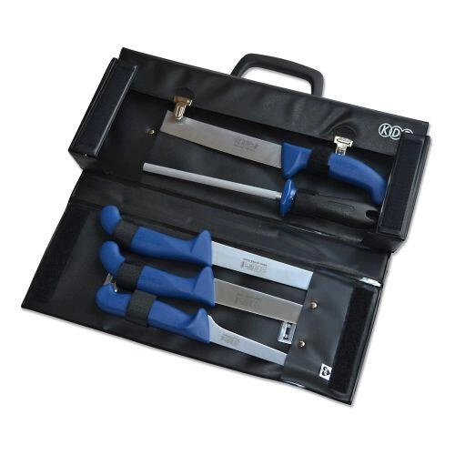 Dieses erstklassige 5-teilige Fleischerset wurde für Profis entwickelt, die Zuverlässigkeit, Ergonomie und Langlebigkeit verlangen. Es umfasst Messer zum Ausbeinen, Schneiden und Arbeiten auf dem Hackblock, ergänzt durch einen hochwertigen Wetzstahl für schnelles und präzises Nachschärfen im Betrieb.