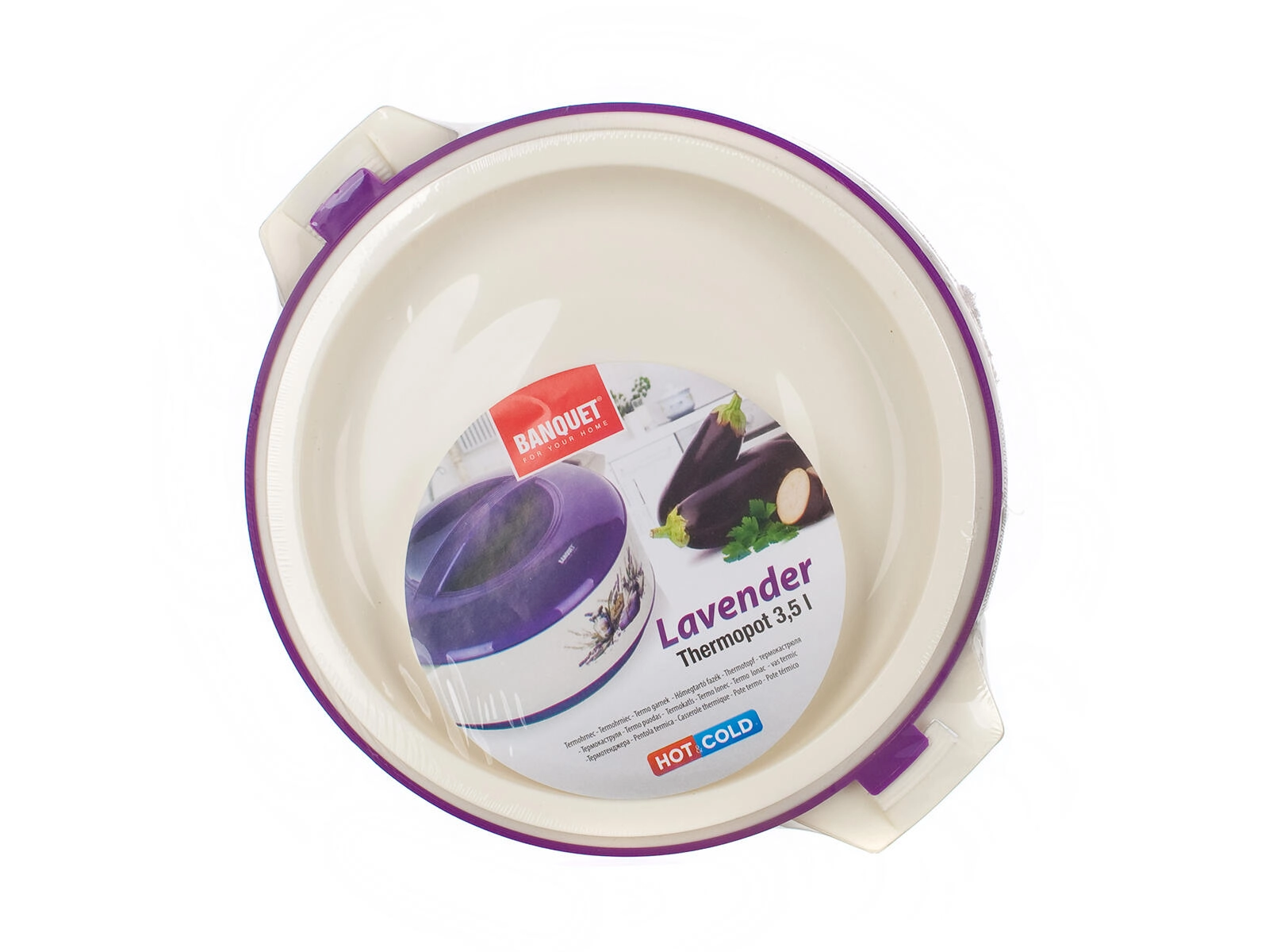 Die Thermoschüssel Lavender 3,5 l ist ein zuverlässiger Helfer für jede Küche. Dank der Kombination aus innerem Edelstahleinsatz und PUR-Schaumfüllung hält sie die Temperatur von Speisen effektiv – sowohl heiß als auch kalt. Robustem Kunststoff mit Lavendeldekor verleiht dem Servieren eine ansprechende Optik, und der Deckel sorgt für sicheren Transport ohne Auslaufen.