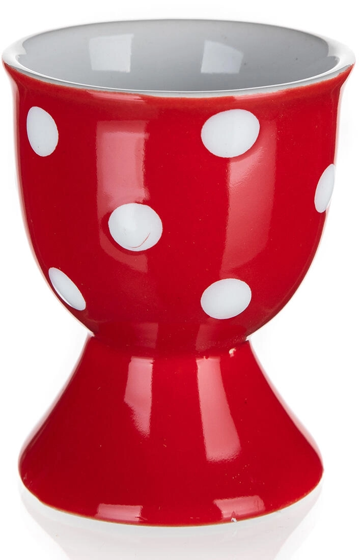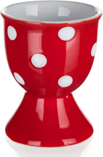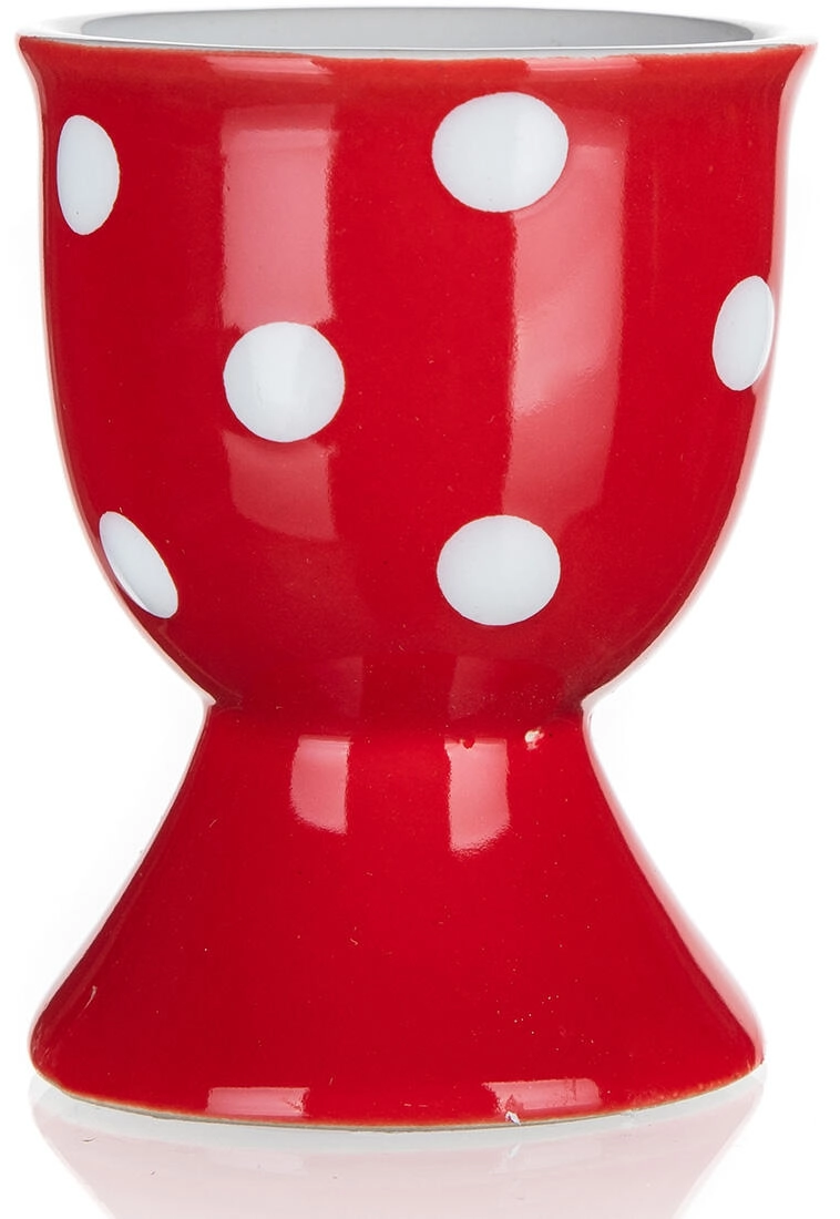 Der fröhliche keramische Eierbecher in Rot mit weißen Punkten ist ein praktisches und dekoratives Accessoire für das tägliche Frühstück. Dank der Höhe von 7 cm hält er ein Hühnerei bequem und verleiht dem gedeckten Tisch das gewisse Etwas.
