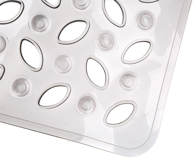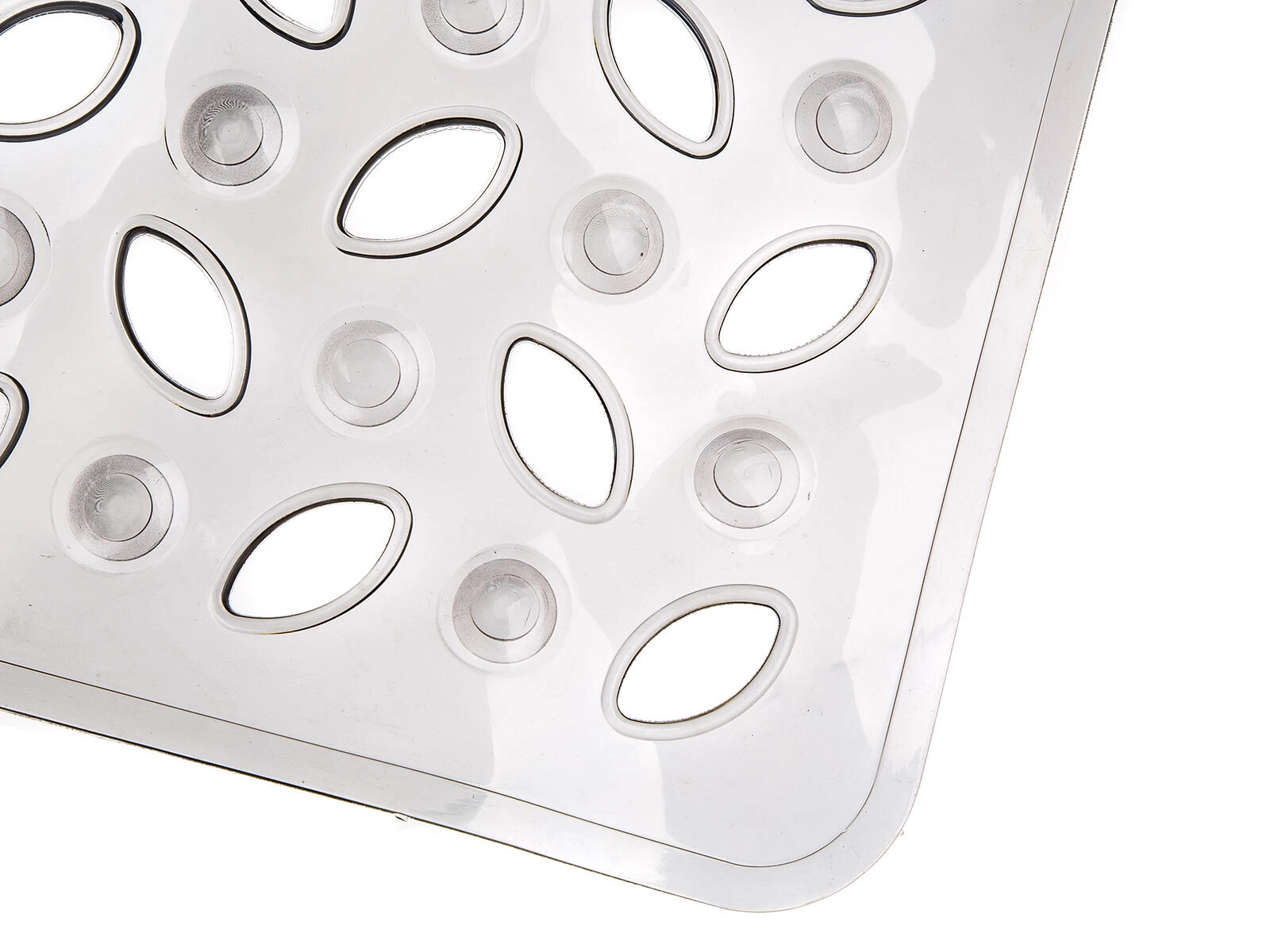 Die transparente graue Ausführung wirkt elegant und vielseitig und lässt sich leicht mit jedem Badezimmerstil kombinieren. Die Matte ist ideal für den täglichen Gebrauch und einfach zu pflegen – nach dem Baden einfach abspülen und trocknen lassen.