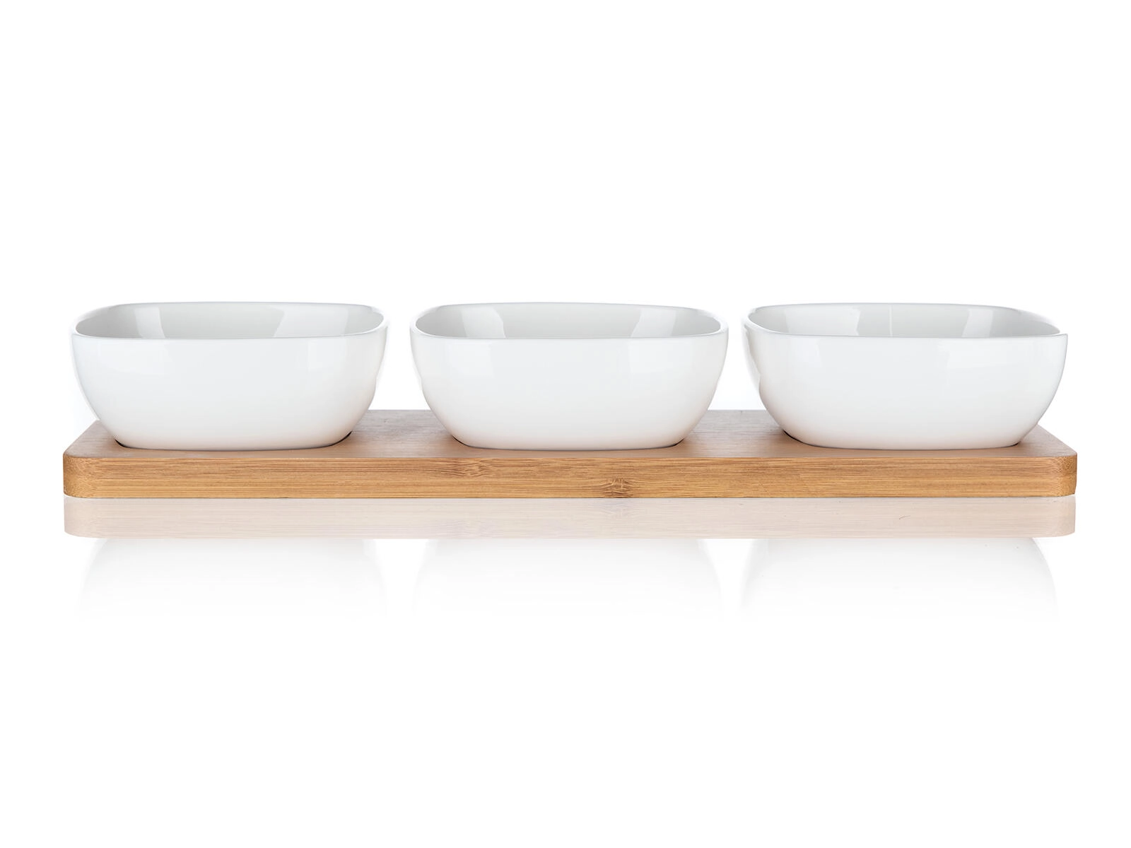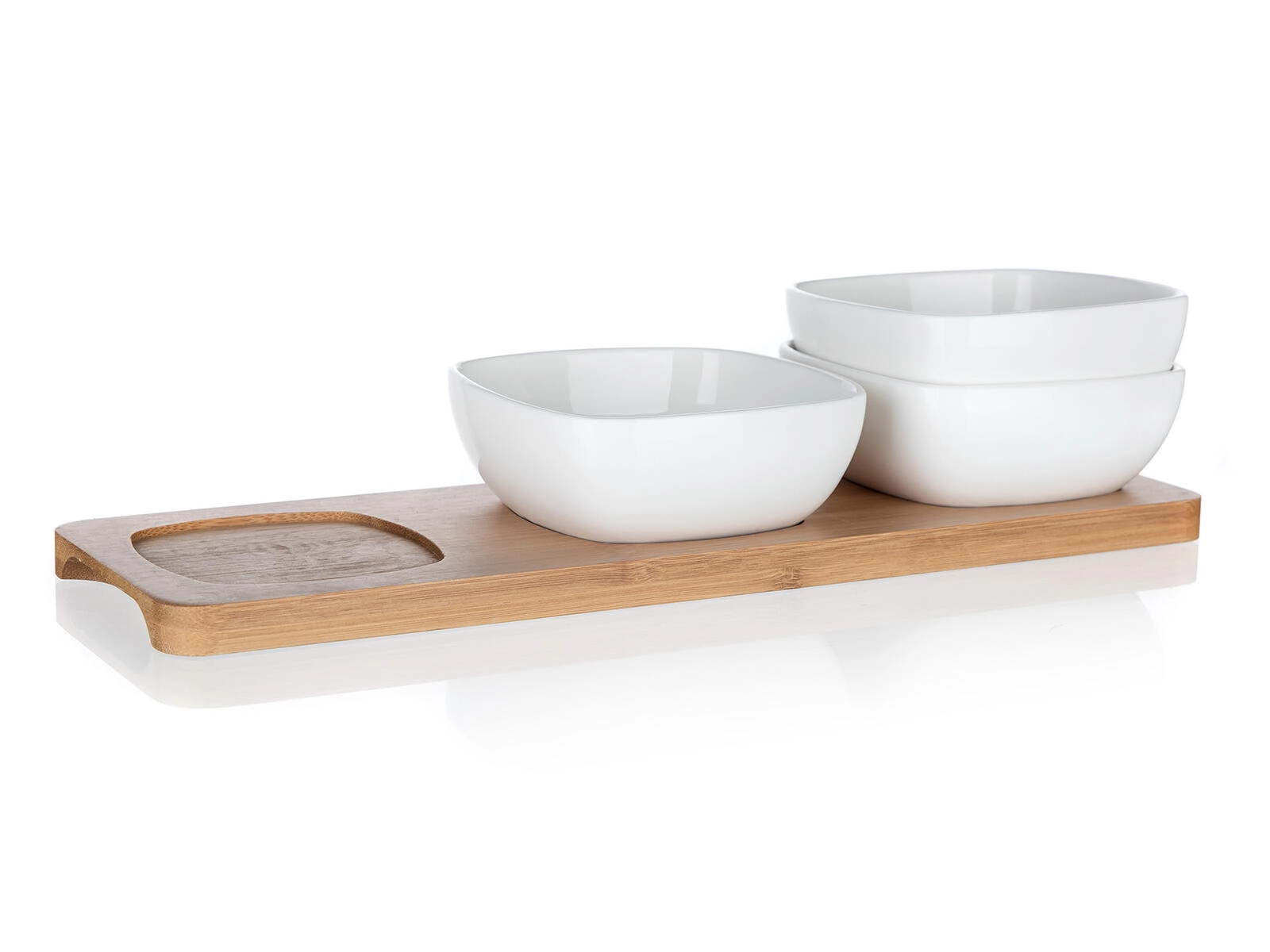 Servierset aus Porzellan mit Bambustablett BRILLANTE, 3 Schalen