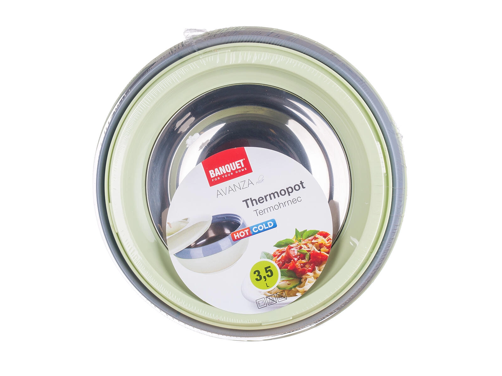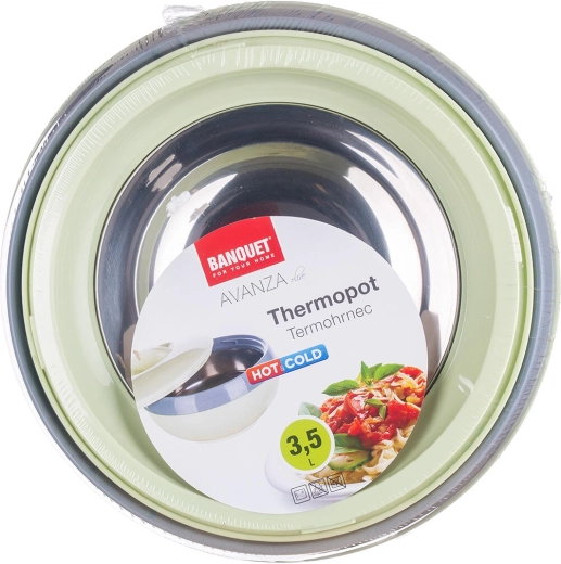 Die Thermoschüssel AVANZA 3,5 l ist ideal zum Servieren und Transport fertiger Gerichte. Der innere Edelstahleinsatz und die doppelwandige Konstruktion mit PUR-Füllung halten die Temperatur zuverlässig, sodass Suppen, Saucen oder Beilagen länger warm und frisch bleiben. Der stabile Deckel mit Griff lässt sich leicht aufsetzen und abnehmen.