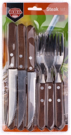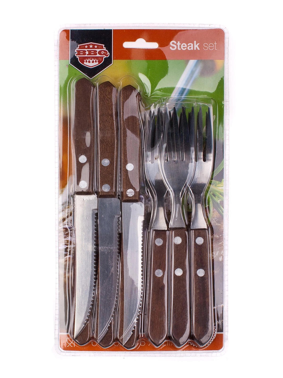 BBQ Steakbesteck-Set 12-tlg. Edelstahl mit dunklem Holzgriff