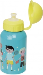 Der aufklappbare Kunststoffdeckel schützt das Mundstück vor Schmutz und erleichtert das Trinken auch für kleinere Kinder. Die verspielten, bunten Illustrationen von Ingela P. Arrhenius machen die Flasche zu einem stylischen Accessoire, das Kinder gern dabeihaben.