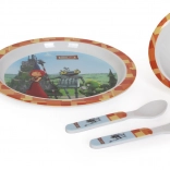 Genießen Sie Ihre Mahlzeiten mit Ihrem eigenen Ess-Set, das einen Teller, eine Schüssel, einen Becher und Besteck enthält – alles mit dem Motiv von Ritter Rusty und seinen Freunden.