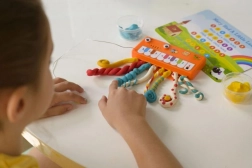 Dieses Klavier unterstützt die Entwicklung von Kreativität und grundlegenden musikalischen Fähigkeiten durch interaktives Spielen mit bunten Tasten und Knetmasse.