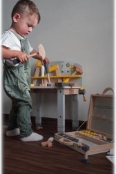 Die Werkbank ist ideal für Kinder ab 3 Jahren und bietet die Möglichkeit zur Zusammenarbeit beim Aufbau, wodurch Geschicklichkeit und Vorstellungskraft weiter gestärkt werden.