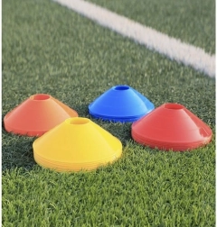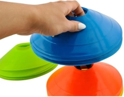 Das Set flacher Trainingskegel ist ideal für Fußball, Leichtathletik, Fitness und den Schulsport. Fünf kräftige Farben (Gelb, Orange, Rot, Grün, Blau) ermöglichen eine klare Markierung von Zonen, Bahnen und Übungsstationen – das erhöht die Sicherheit und Übersicht im Training.